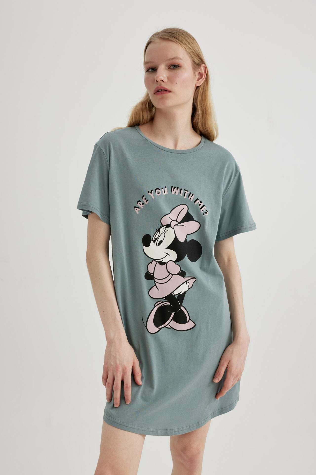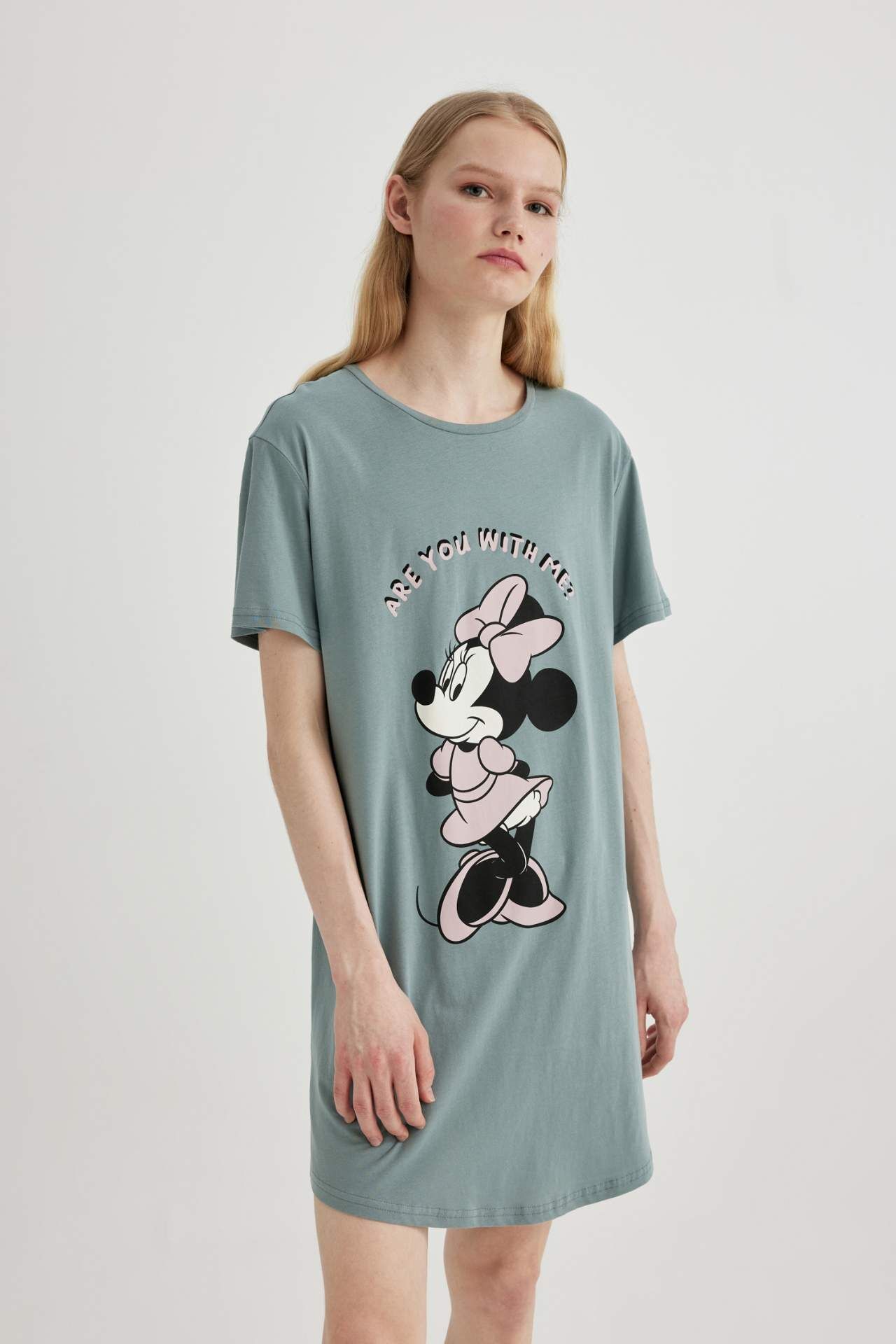 DeFactoFit Fall in Love Disney Mickey & Minnie Bisiklet Yaka Kısa Kollu Gecelik