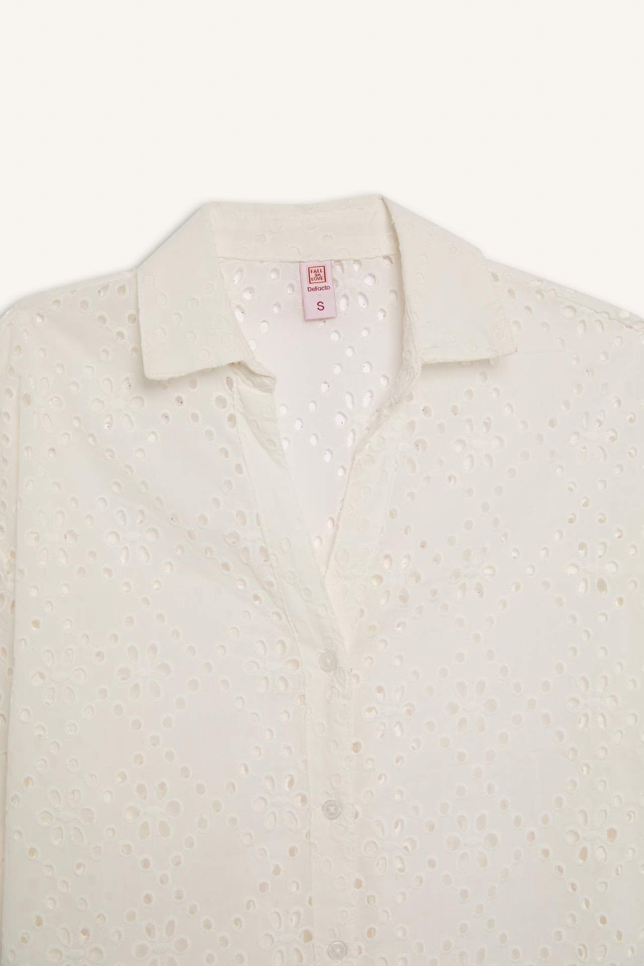 DeFactoFit Fall in Love Pamuklu Delik İşlemeli Beyaz Plaj Gömleği
