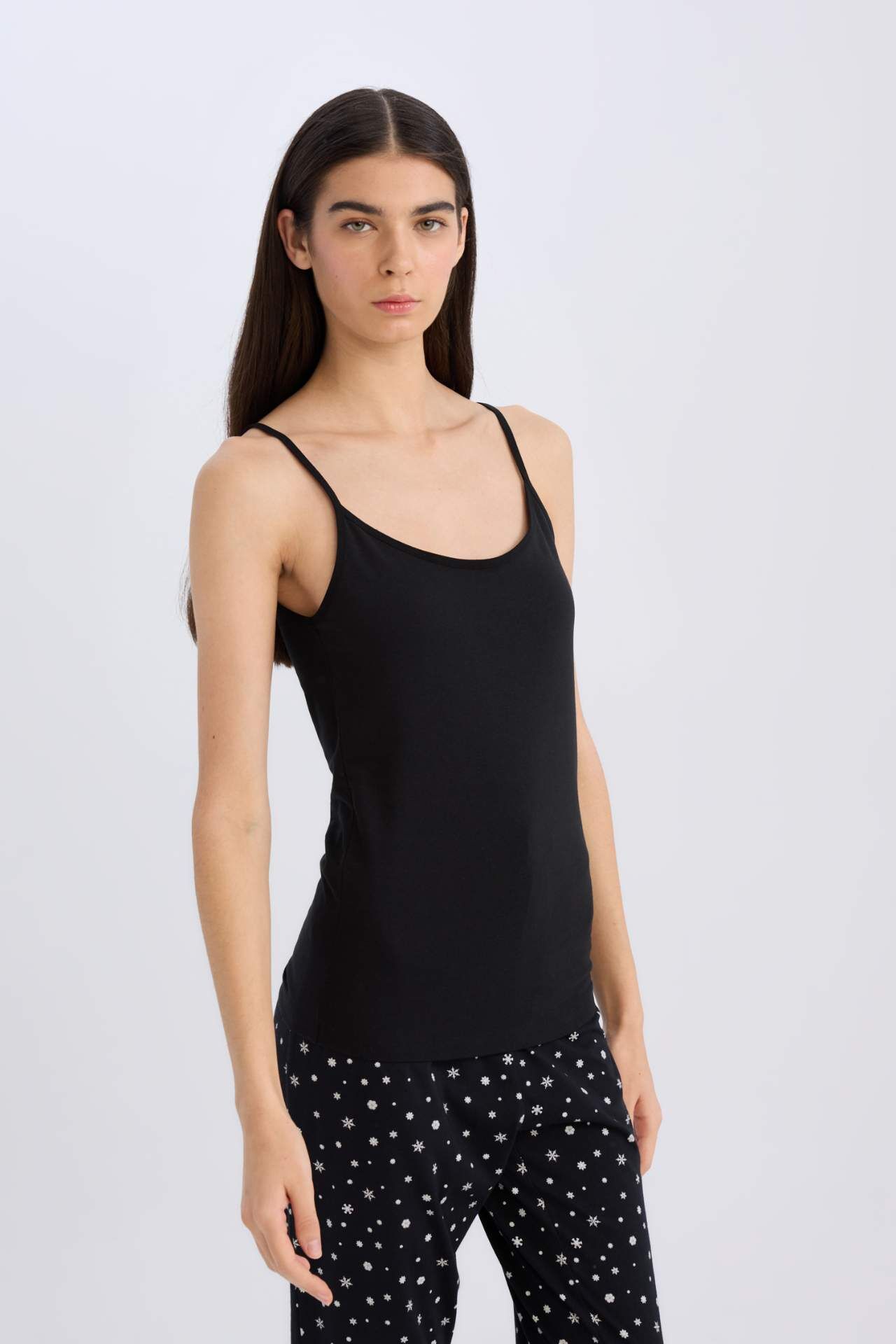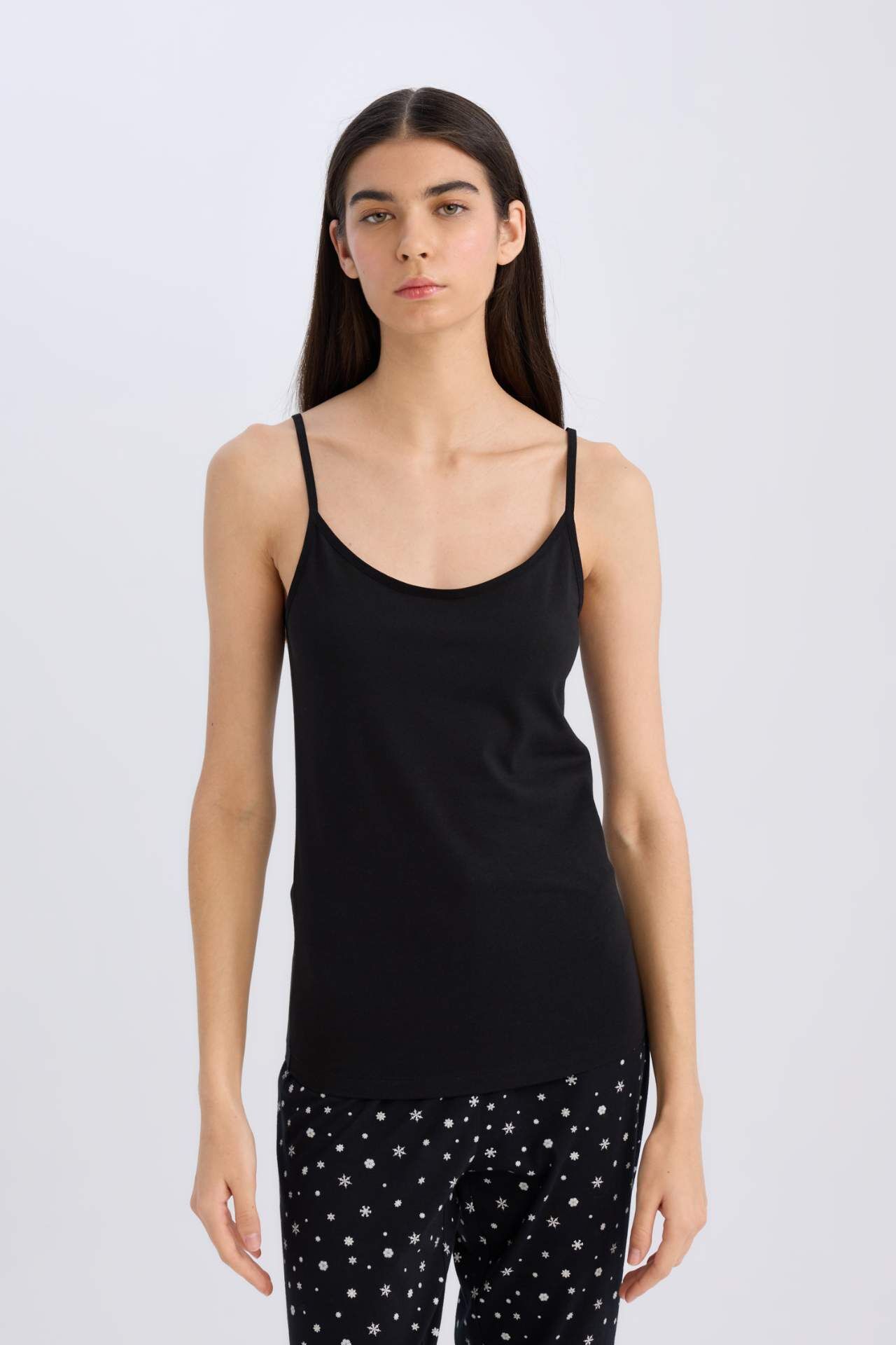 Fall in Love Pamuklu İnce Askılı Siyah İç Atlet