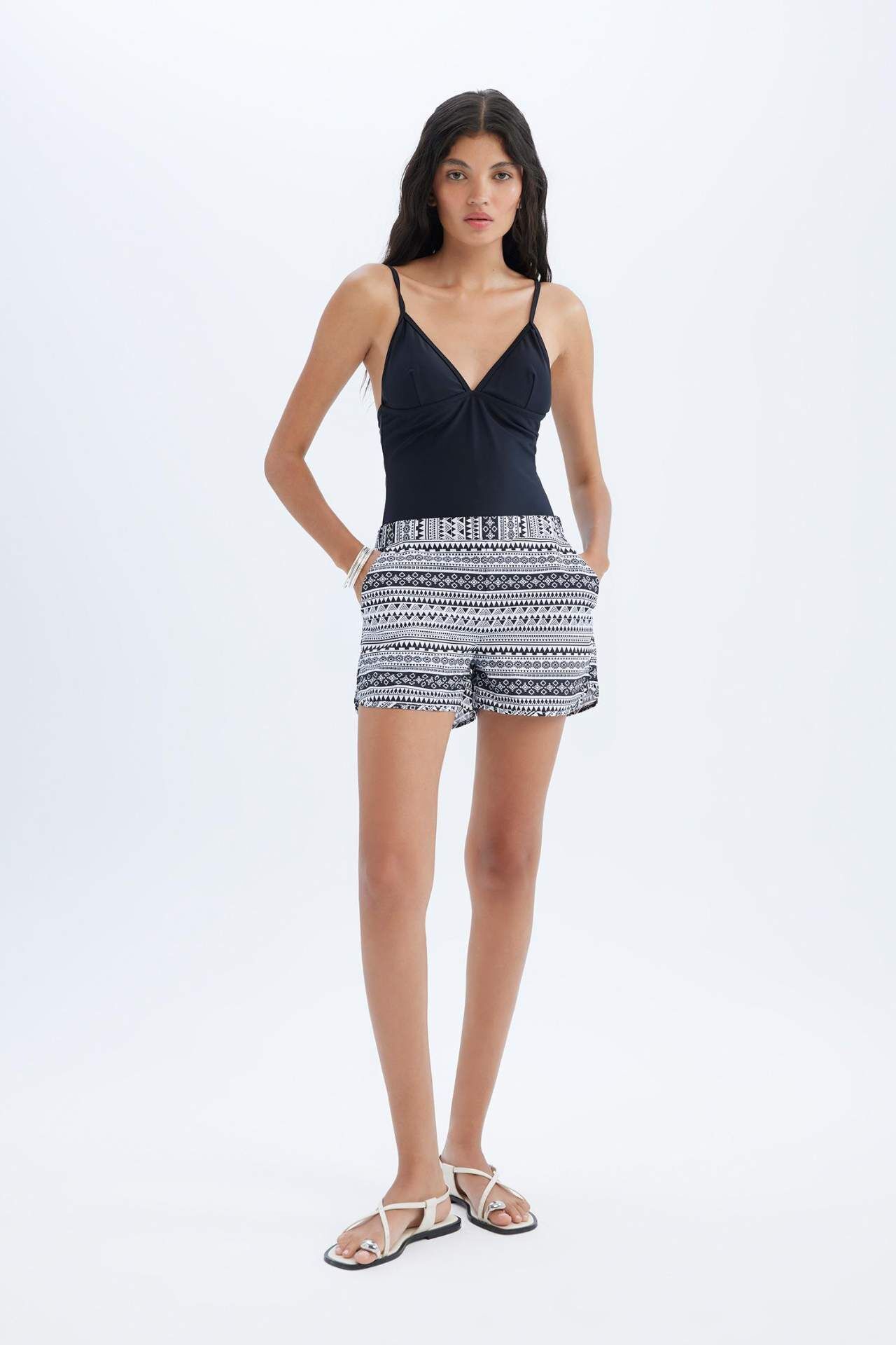 DeFactoFit Fall in Love Regular Fit Etnik Desenli Deniz Şortu