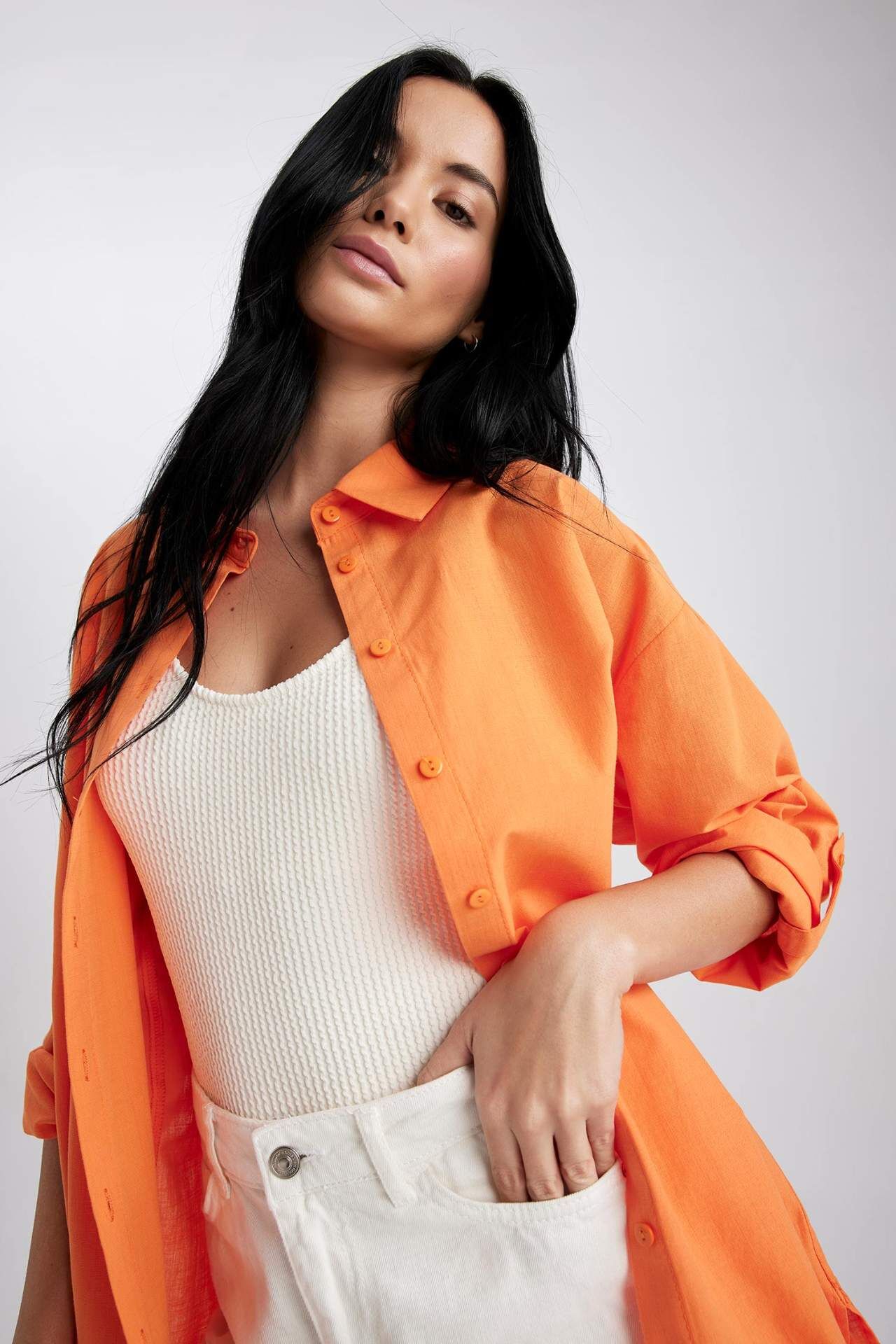 Tatilde plajda rahatça kullanacağınız, pamuklu kumaşı, gömlek yaka, düğme kapamalı gömlek üst modeli ile havuz kenarında bikini üstü ve mayolarınızla uyum içnde olacağınız renkli terlik ve sandaletlerinizle tercihiniz olacak DeFacto Kadın Fall In Love Regular Fit Pamuklu Plaj Kıyafeti Pamuk 100%,Pamuk 100%
