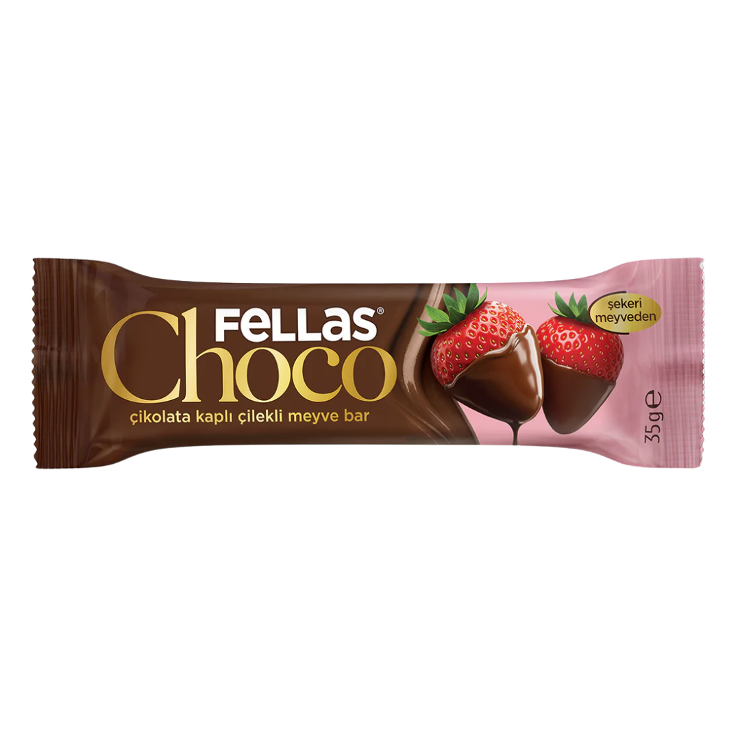 Kendini ödüllendirmek istediğin her anı Fellas Çilekli Choco Bar ile daha keyifli hale getir! Glutensiz, yüksek lifli ve şekeri meyveden gelen yapısıyla lezzetten ödün vermeden tatlı molalarına eşlik eder.