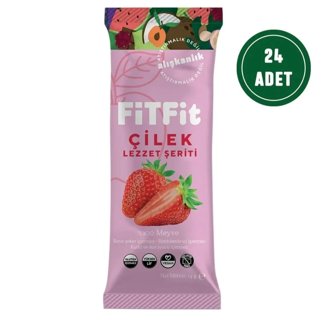 Çileğin yoğun aromasıyla her an taptaze bir lezzet! Çilekli lezzet şeriti, doğal ve katkısız içeriğiyle gün boyu yanınızda. Sağlıklı bir atıştırmalık arayanlar için mükemmel bir tercih. "Hareket halindeyken atıştır, eğlenceyi yakala!" FitFit çilek şeritleriyle doğanın tatlılığını eğlenceli bir şekilde keşfedin!