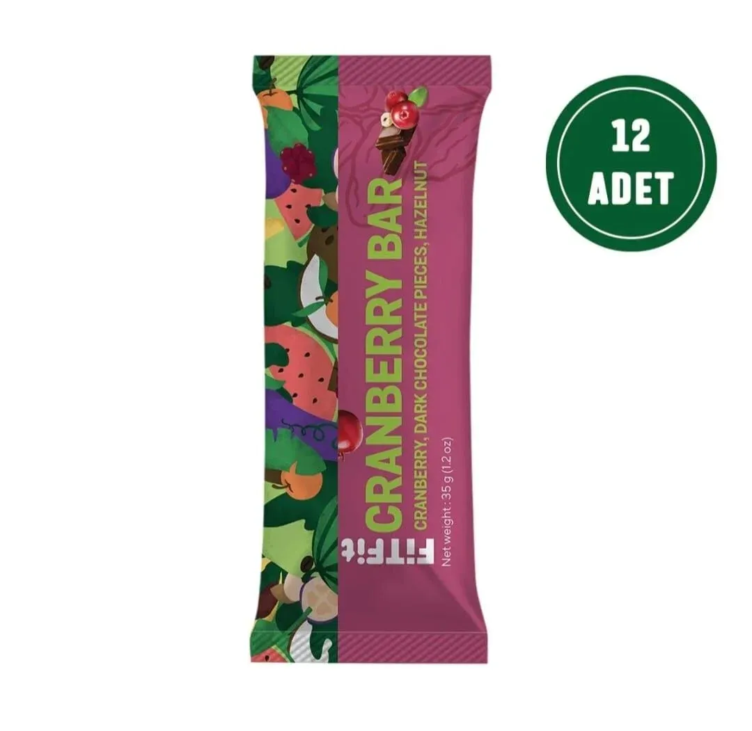 FitFit Cranberry Bitter Çikolata Parçacıklı Bar Glutensiz Doğal Atıştırmalık 35GR X 12 ADET