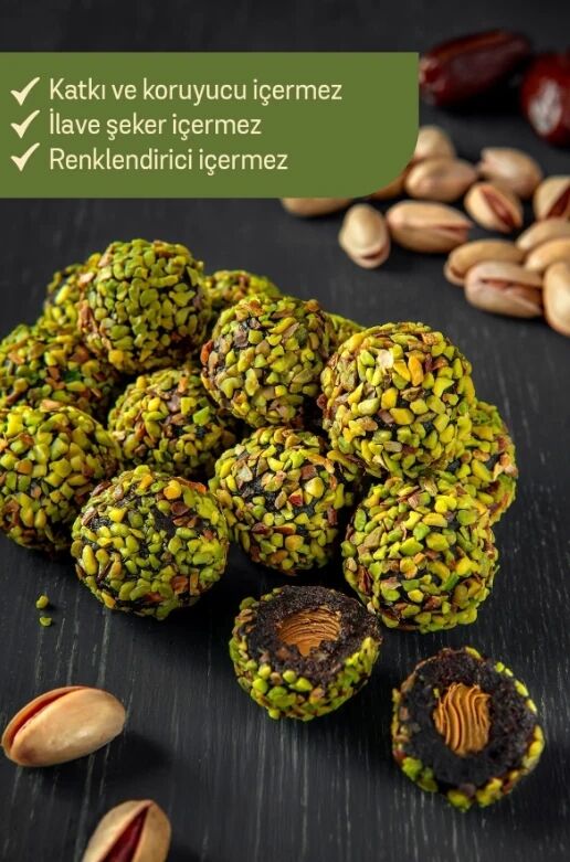 Bu özel tarif, hurmanın doğal şekerleri ve lif içeriği ile Antep fıstığının sağlıklı yağlarını bir araya getirir. Yüksek lif ve bitkisel protein içeriği sayesinde, tok tutucu bir etki sağlar. Spor sonrası yenilenme, ofis ara öğünü veya çay yanında sağlıklı bir tatlı alternatifi arayanlar için idealdir.