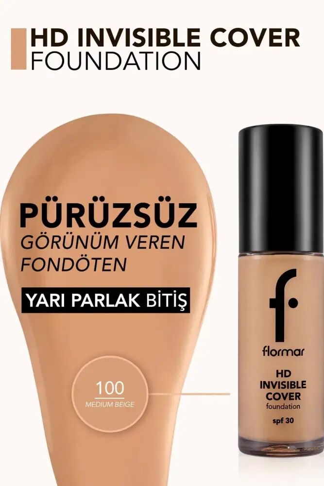 Flormar Invisible Cover HD Hafif Yapılı & Yarı Bitişli SPF30 Fondöten, orta seviye pigment yoğunluğuna sahip doğal kapatıcı etkili bir fondötendir. Kremsi kıvamı ve likit formülü sayesinde kolayca uygulanır. 30 faktör güneş koruması ile en hassas ciltler için bile ideal bir ürün olma özelliği taşır. Cilde yoğun nemli ve ışıltılı bir görünüm kazandırması bakımından Flormar’ın aydınlatıcı fondöten çeşitleri içerisinde güçlü bir seçenek oluşturur.