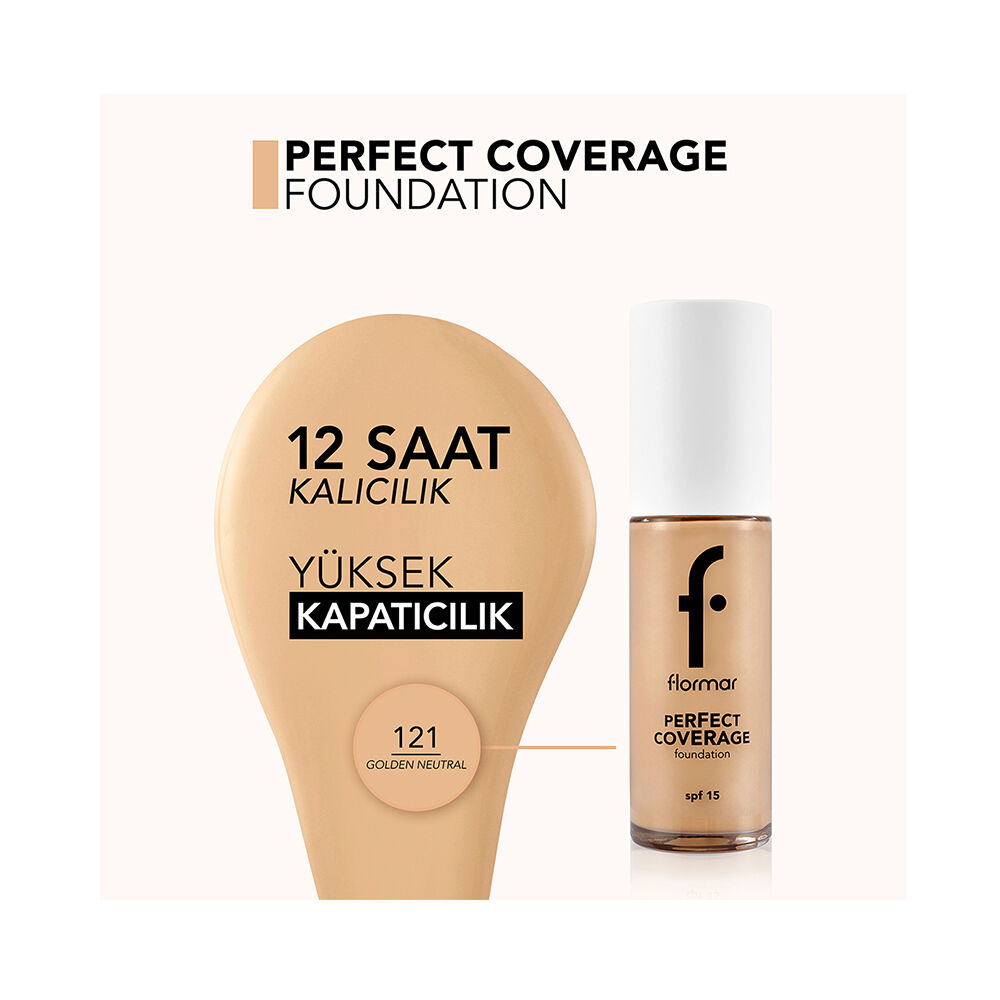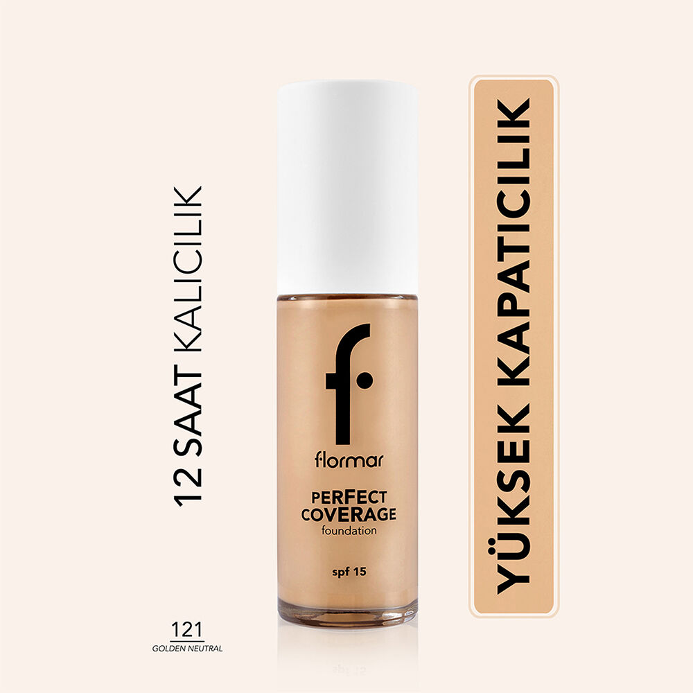 Flormar Perfect Coverage Yoğun Kapatıcı & Yarı Parlak Bitişli SPF15 Fondöten - 121 Golden Natural