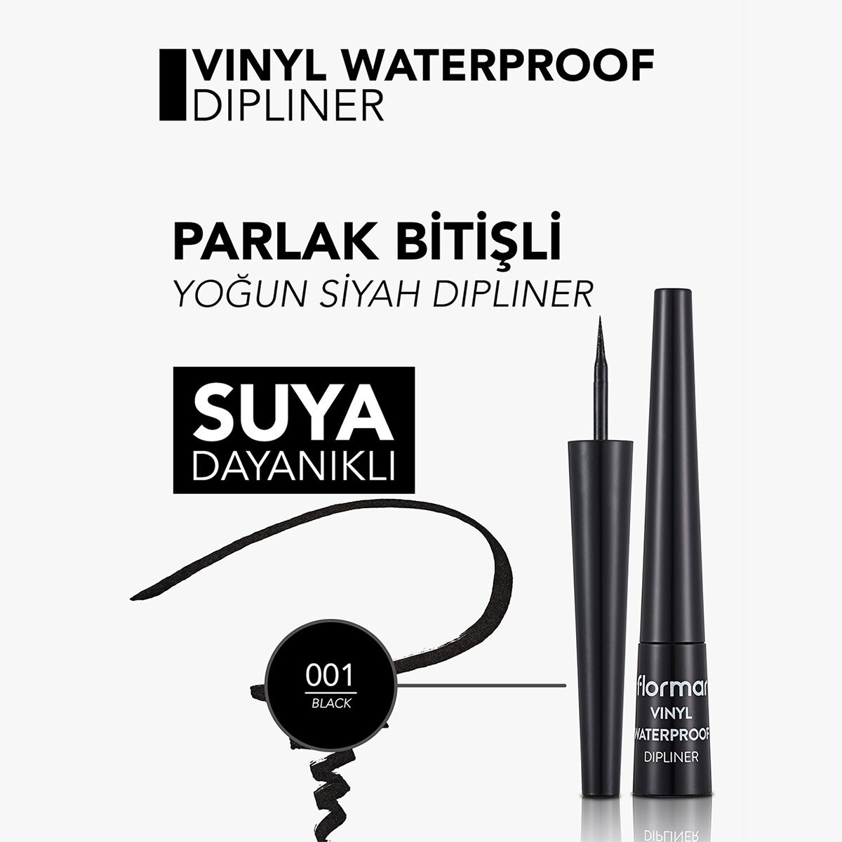 Flormar Vinyl Waterproof Yüksek Pigmentli & Parlak Bitişli Suya Dayanıklı Dipliner Özellikleri: