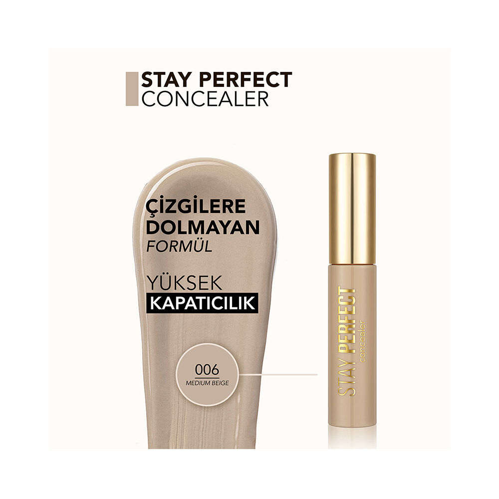 Flormar Stay Perfect Yüksek Pigmentli & Yarı Mat Bitişli Likit Kapatıcı - 006 Medium Beige
