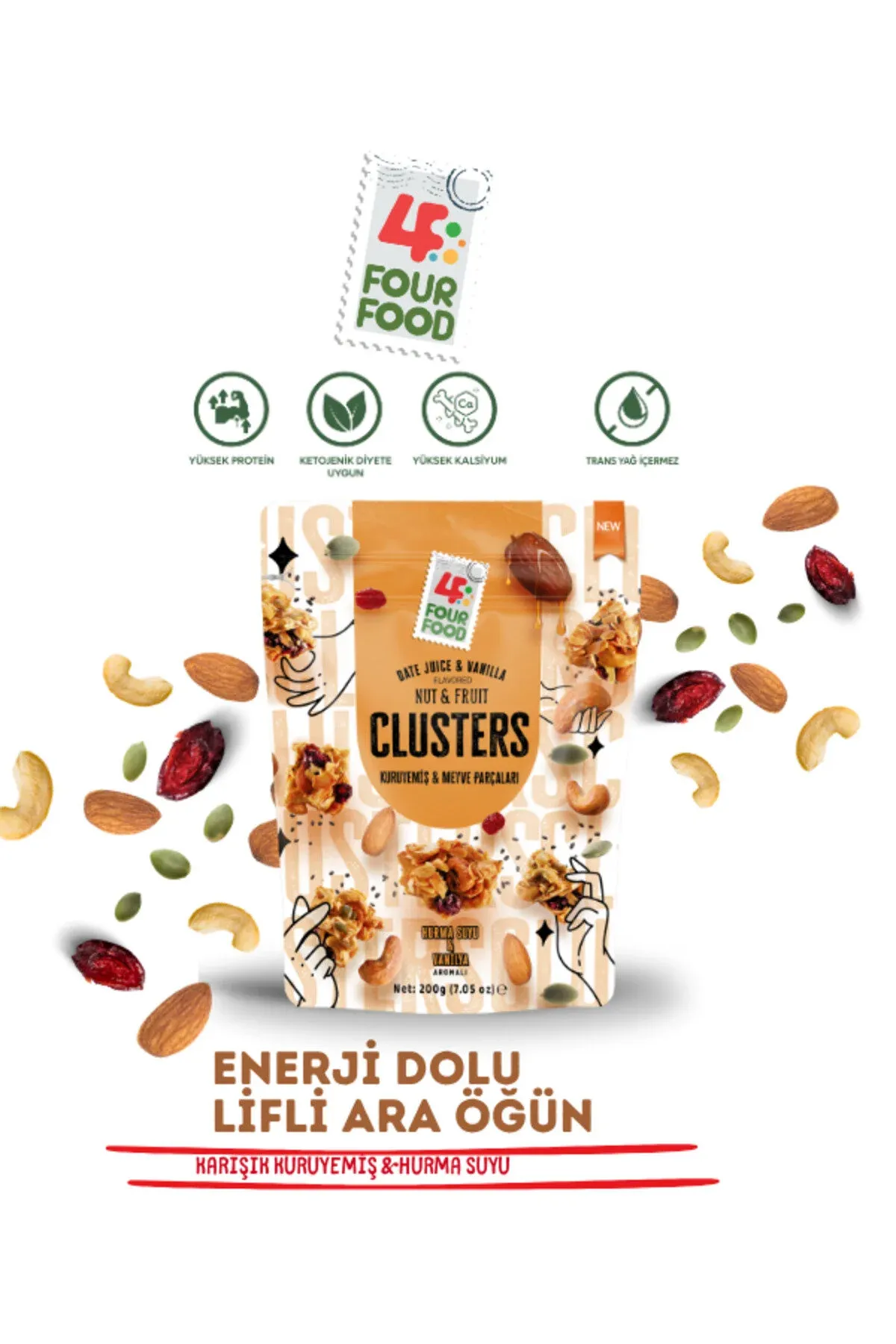 Four Food Nut & Fruit Clusters Serisi - Kaju Fıstığı , Badem, Chia Tohumu