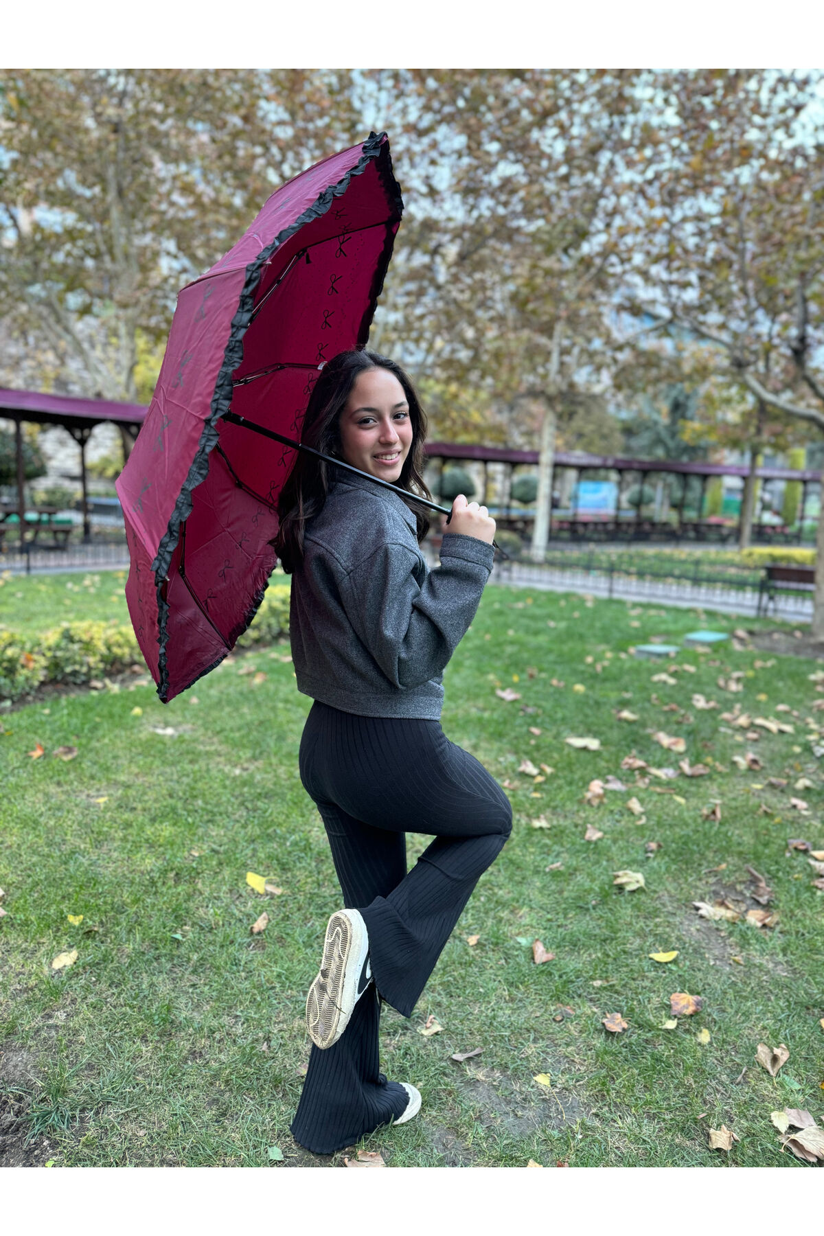 Gabbiano 8 Telli Tam Otomatik Rüzgara Dayanıklı Desenli Şemsiye Pembe