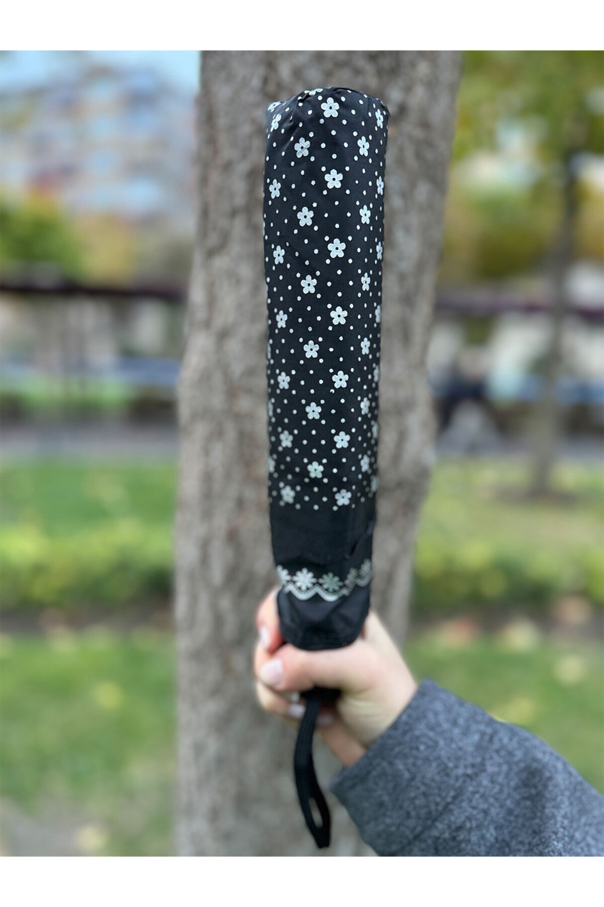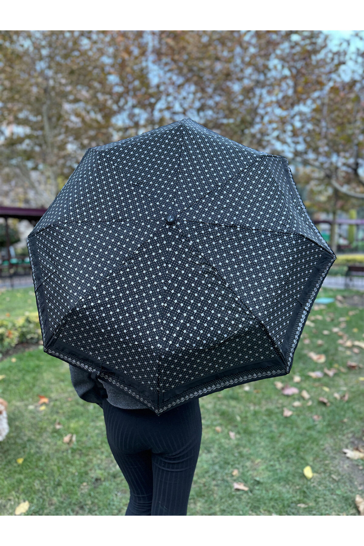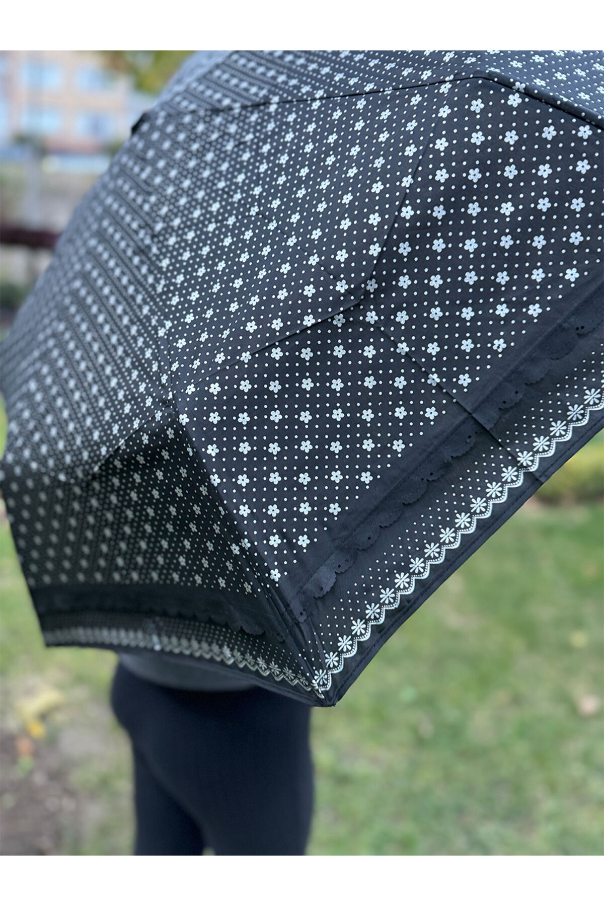 Gabbiano 8 Telli Tam Otomatik Rüzgara Dayanıklı Desenli Şemsiye Siyah-gri