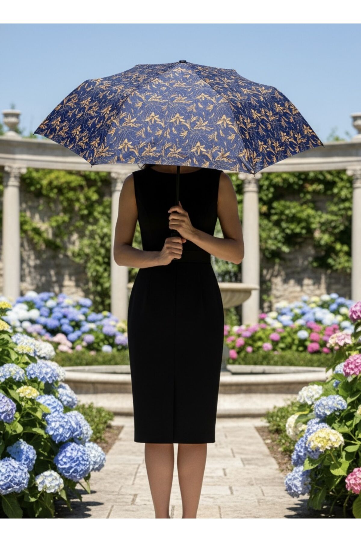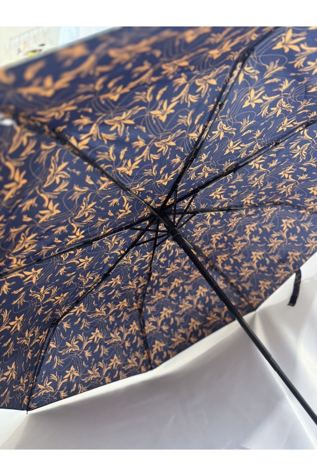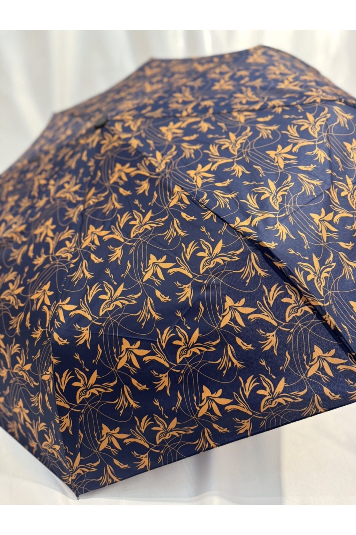 Gabbiano 8 Telli Tam Otomatik Rüzgara Dayanıklı Yaprak Desenli Şemsiye Lacivert