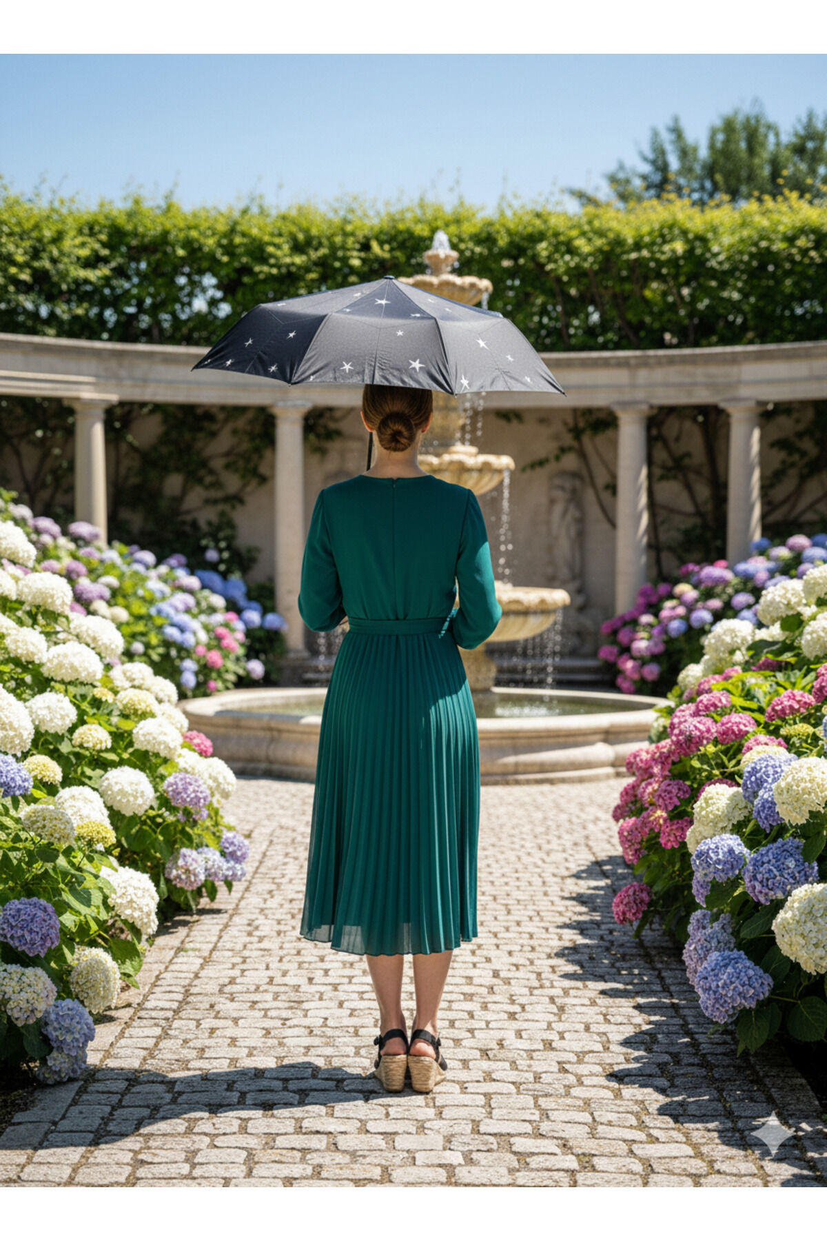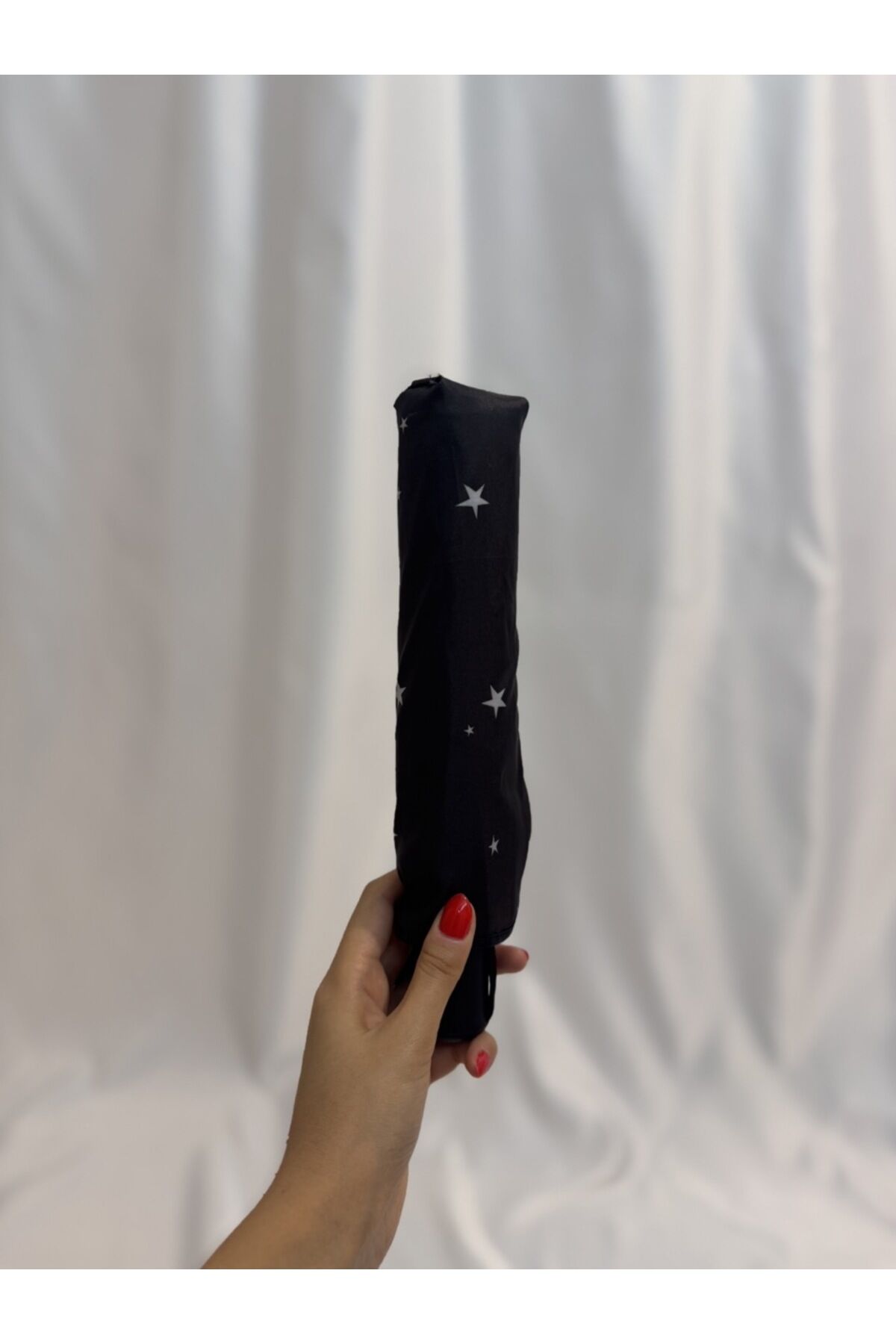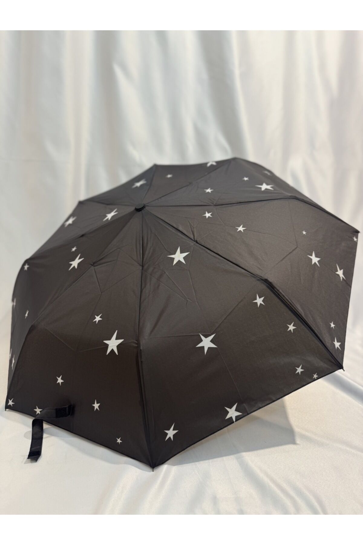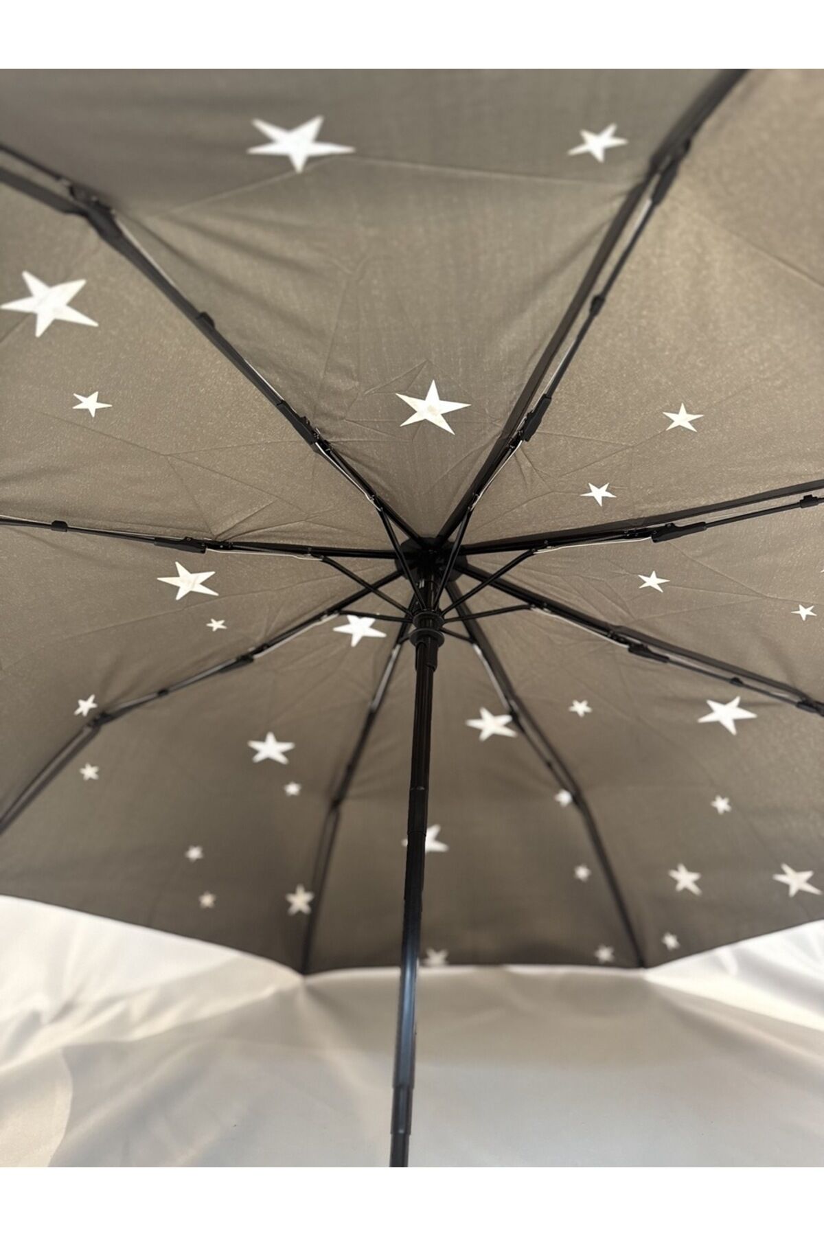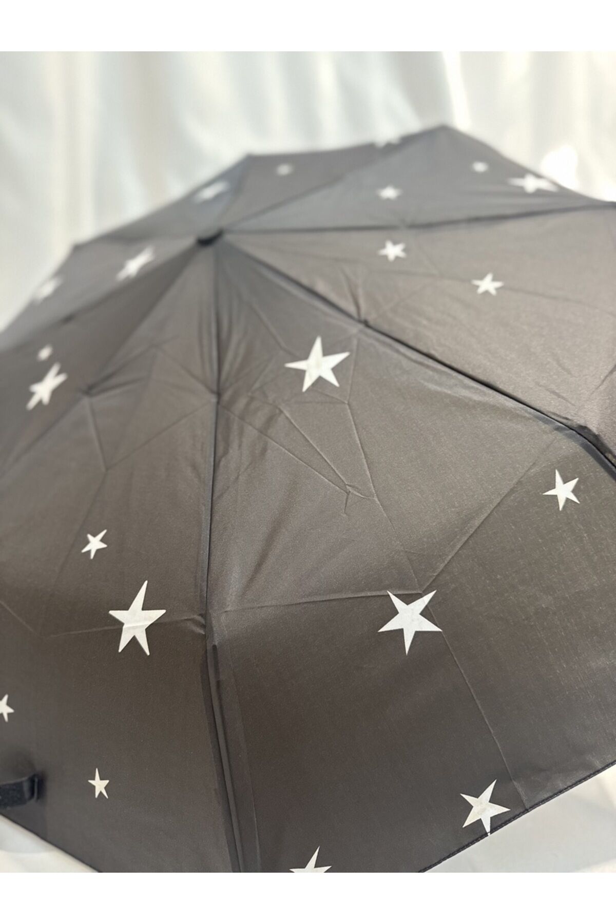 Gabbiano Siyah 8 Telli Tam Otomatik Rüzgara Dayanıklı Yıldız Desenli Şemsiye Siyah