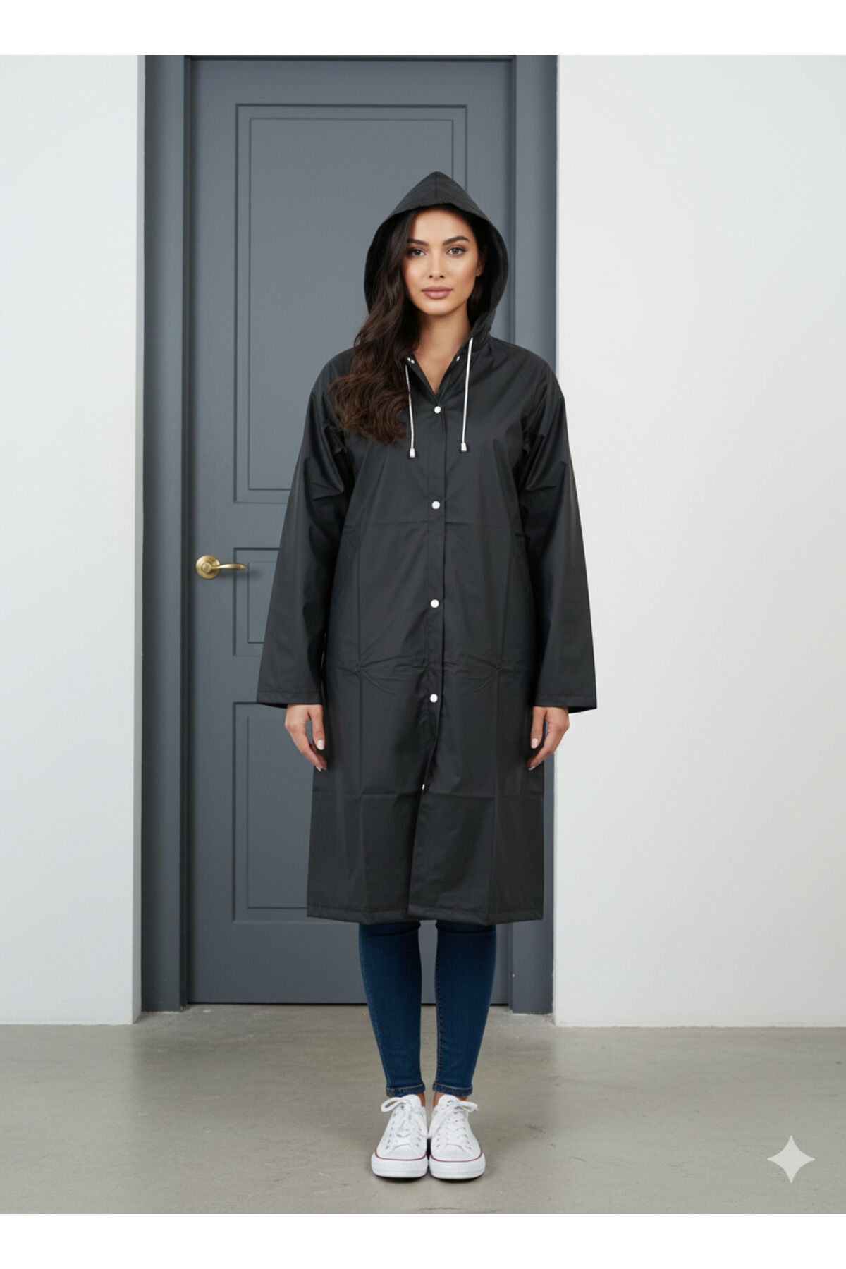 Gabbiano Yetişkin Unisex Yüksek Gramajlı Kalın Eva Kumaş Suya Rüzgara Dayanıklı Yağmurluk Siyah