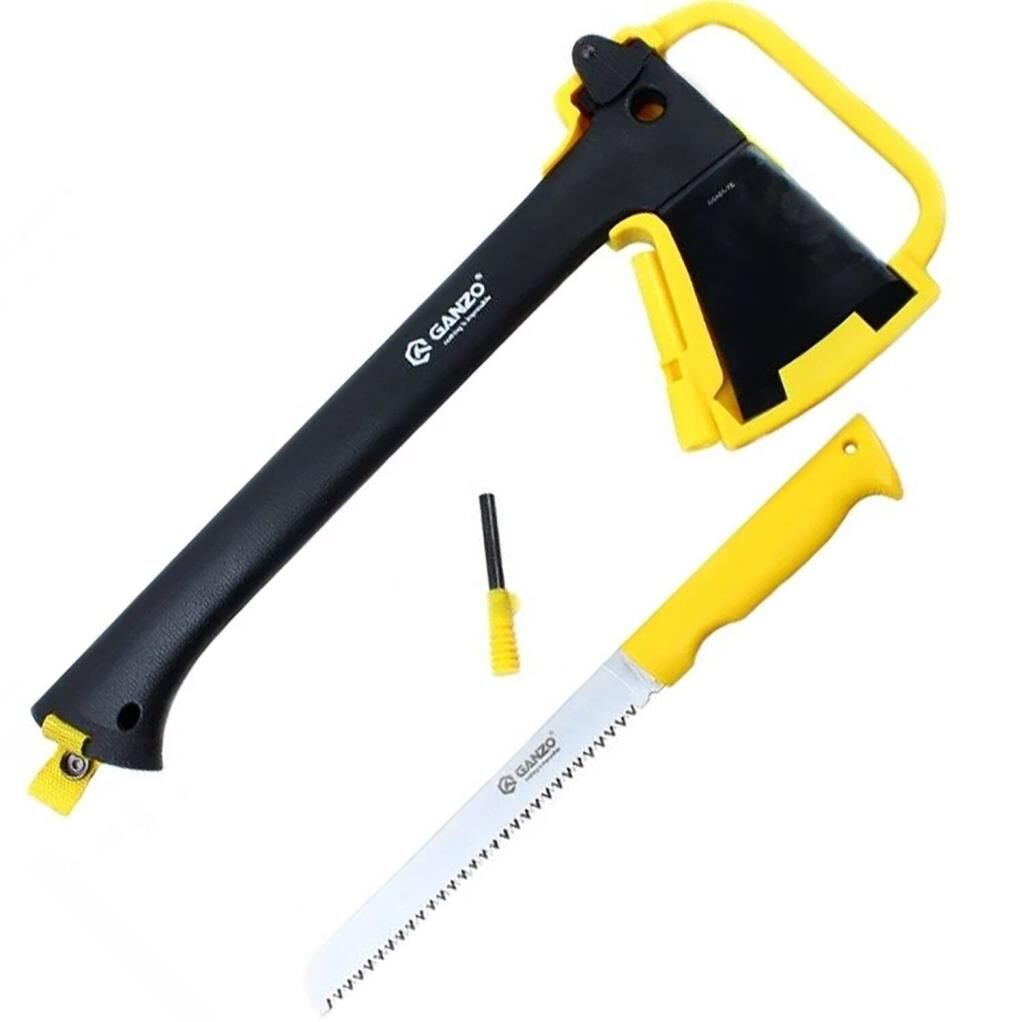 Kılıf, oldukça görünür sarı plastikten yapılmıştır ve balta kullanılmadığında baltanın kenarını tamamen kapatır.