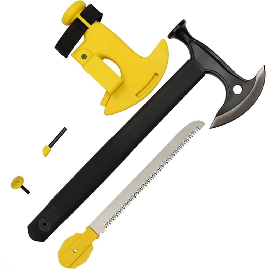 Kılıf, oldukça görünür sarı plastikten yapılmıştır ve balta kullanılmadığında baltanın kenarını tamamen kapatır.