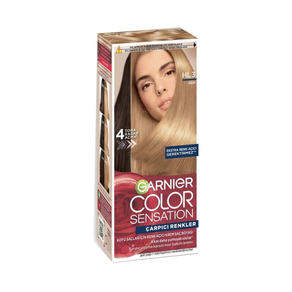 Yanıt: Garnier Çarpıcı Renkler Saç Boyası HL3 Sarı, 6-8 hafta boyunca kalıcı bir renk sunar.