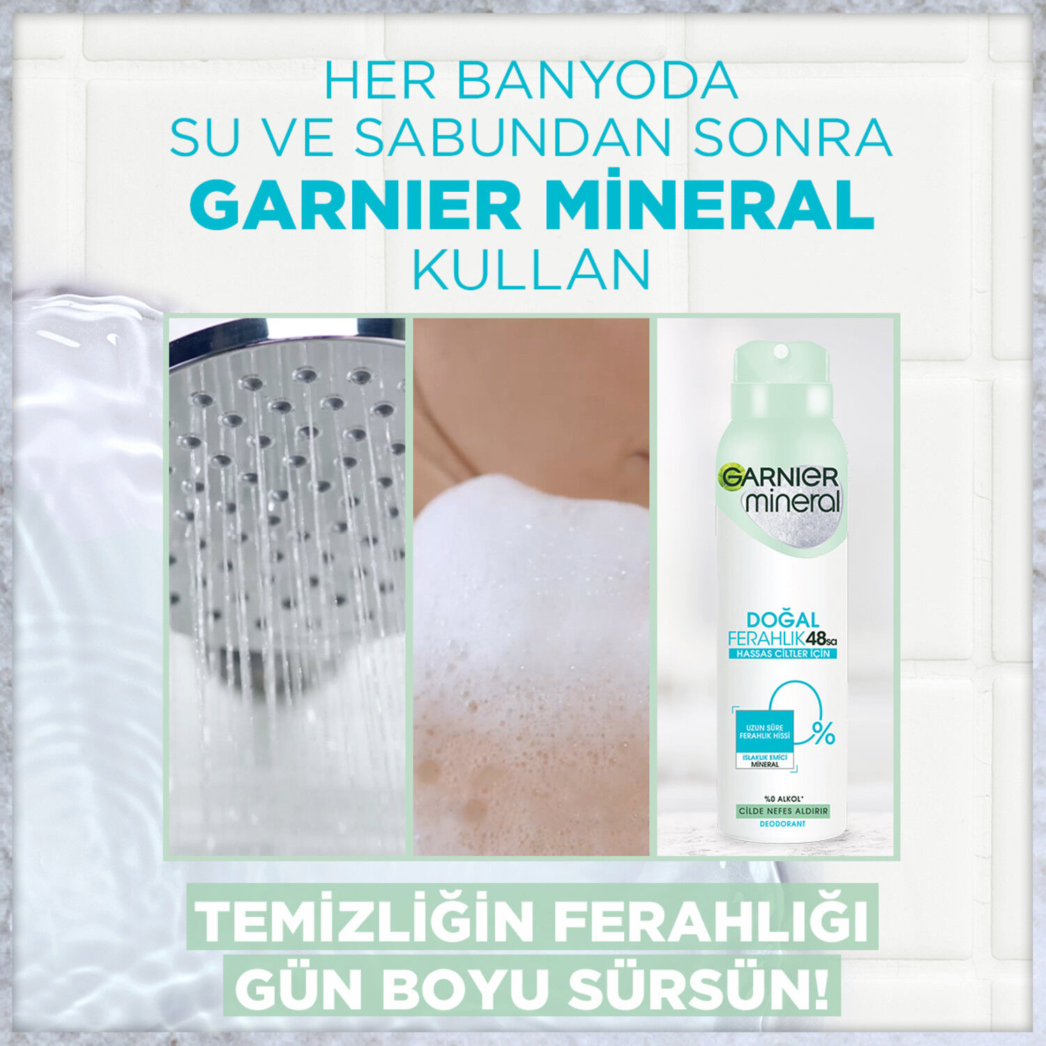 Garnier Mineral Doğal Ferahlık sprey, cilde duyarlı, uzun süre ferahlık hissi veren ilk* 48 saat etkili, alkol** içermeyen sprey deodorant