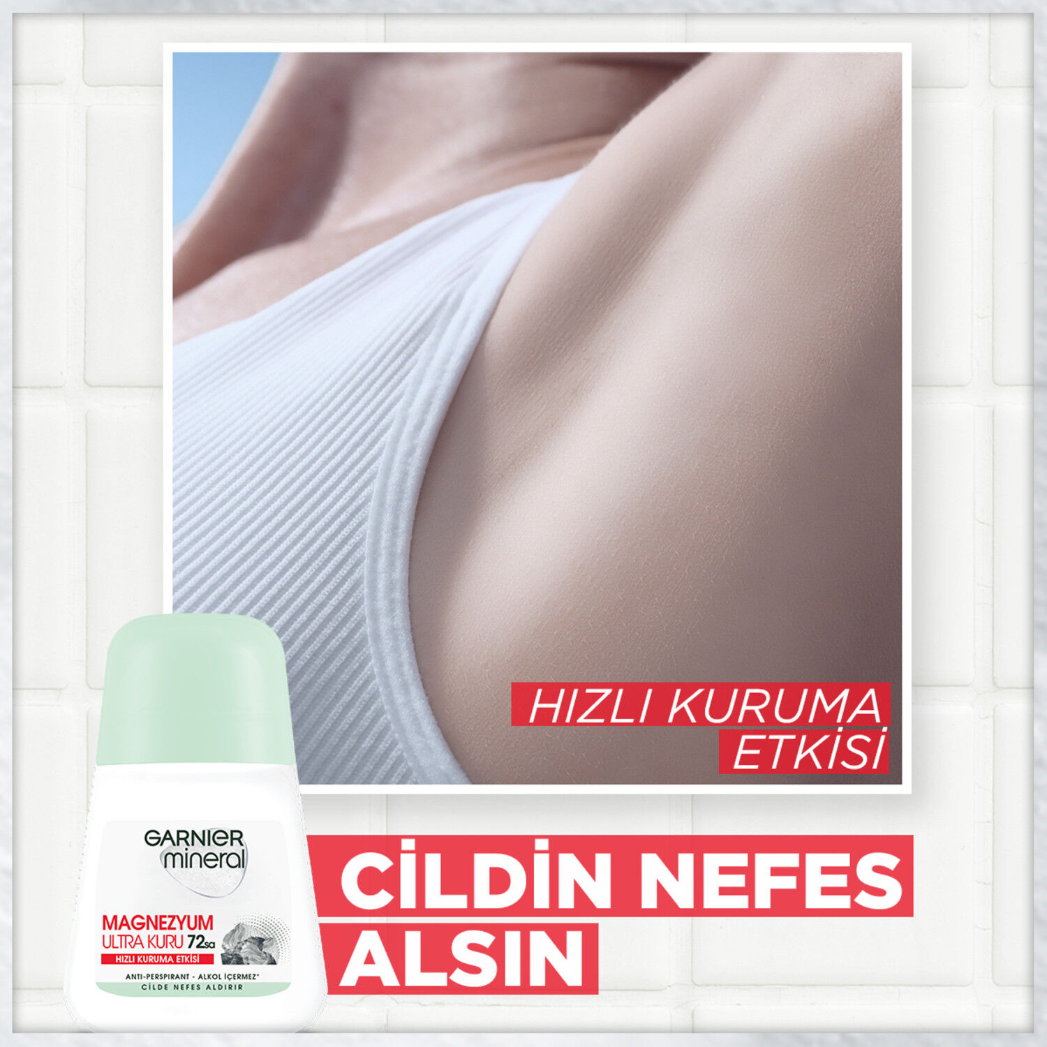 Garnier Mineral Magnezyum** Ultra Kuru, kötü kokuya karşı 72 saat aralıksız koruma sağlar. Cildinize nefes aldırır Formülü doğal kayalardan elde edilen ve Talk'a göre ıslaklığı 4 kat daha fazla emen Magnezyum** içerir. Dermatolojik olarak test edilmiştir Alkol*** içermez