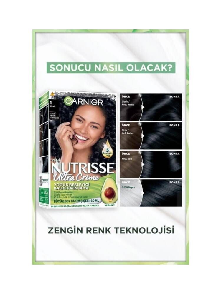 GARNIER NUTRISSE İLE BESLENEN SAÇTA RENKLER DAHA HARİKA: Zengin formülüyle saç tellerine etkili şekilde nüfuz ederek daha zengin, ışıltılı, uzun süre kalıcı renk sonucu ve %100 beyaz kapama sağlar*. Tüm saç tiplerine mükemmel şekilde uyum sağlayarak eşit bir şekilde dağılır ve güzel bir ışıltı verir