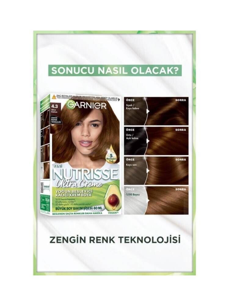 Garnier Nutrisse Yoğun Besleyici Kalıcı Krem Saç Boyası 4.3 Altın Kahve