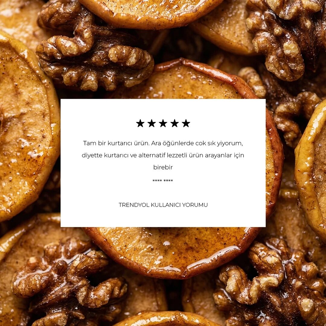 Kurutulmuş elma ve ceviz içi bal, tarçın ve deniz tuzu ile glaze edilir.