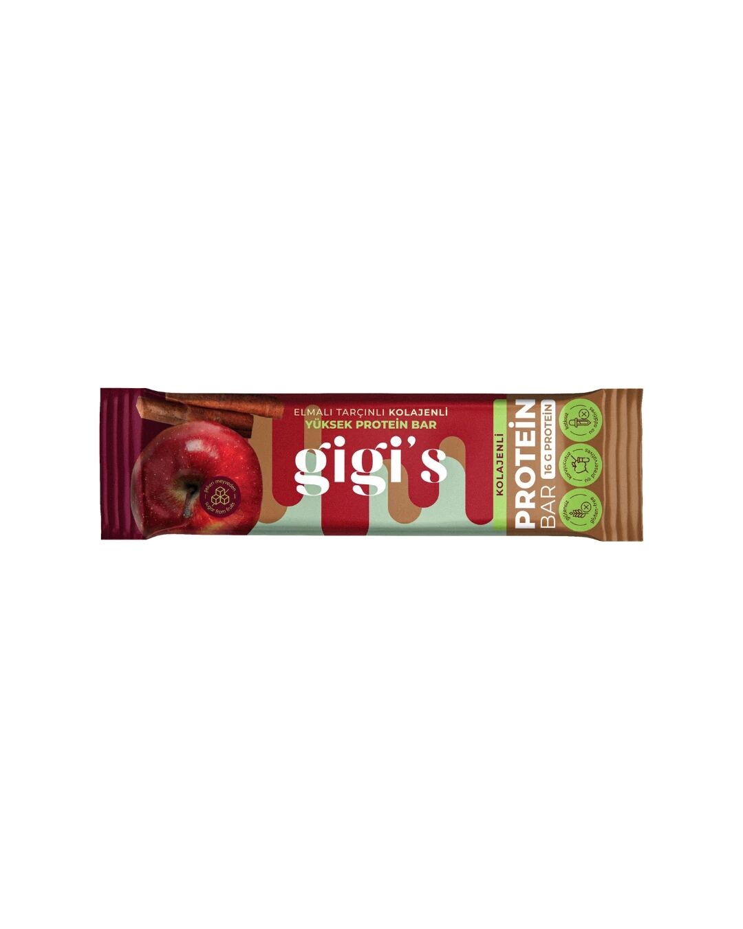 İçindekiler: Elma suyu, hurma, hidrolize kolajen peptitleri, kurutulmuş elma, peynir altı suyu proteini, bezelye proteini, yer fıstığı, badem, mavi haşhaş, tarçın, zeytinyağı.