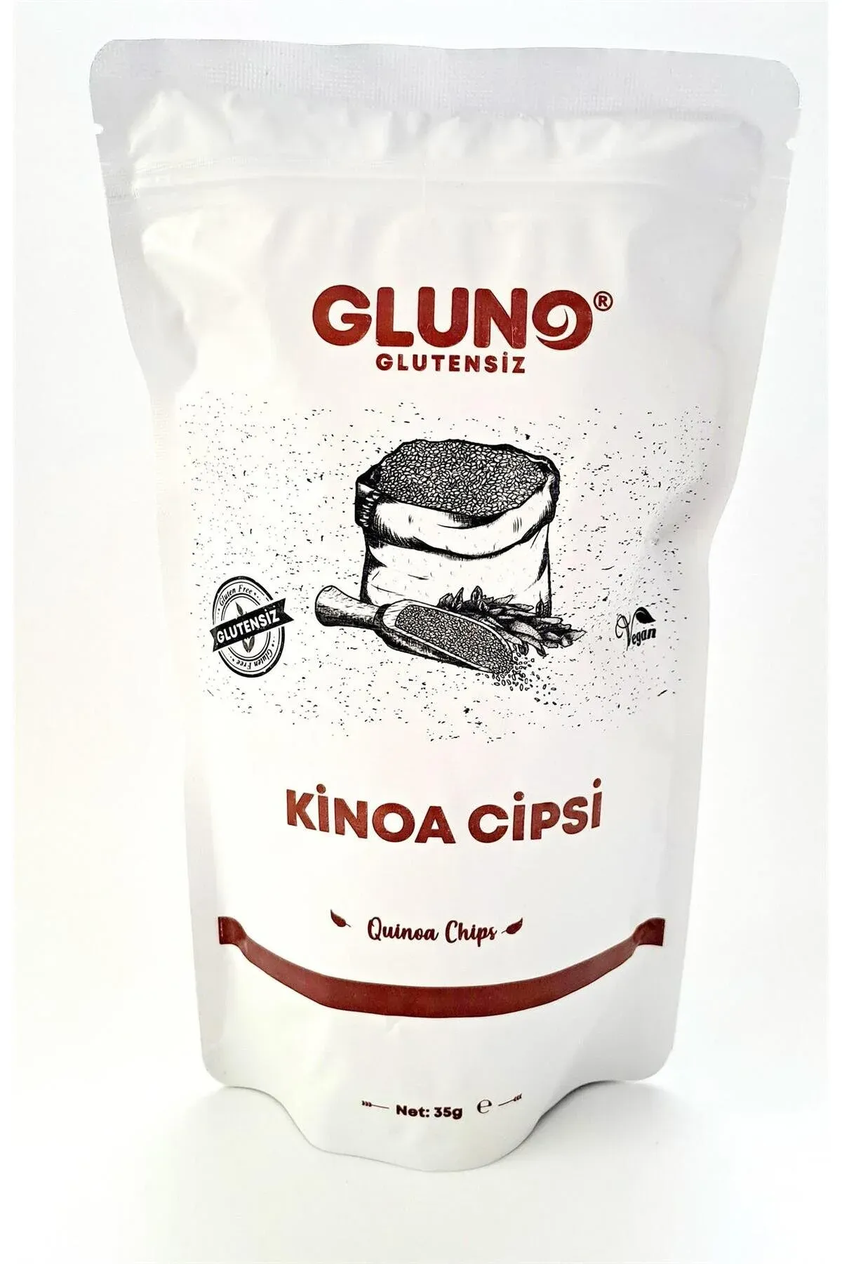 Gluno Glutensiz Kinoa Cipsi 35gr Çölyaklı ve glutensiz diyet yapanlar için tüketimi uygundur. İçindekiler: Kinoa unu (% 51), Pirinç Unu, Karabuğday Unu (%16). Kullanım Alanları: Tek başına ya da yoğurt, süt, salata, çorba vb. ürünler ile karıştırılarak tüketilebilir. Gluten içermez. Paketlenen tesiste sadece glutensiz ürünler üretilmekte ve paketlenmektedir. Çapraz bulaşma yoktur. Vegan bir üründür. Kuru ve serin yerde, güneş ışığından uzakta muhafaza ediniz. Türk Gıda Kodeksine uygundur.