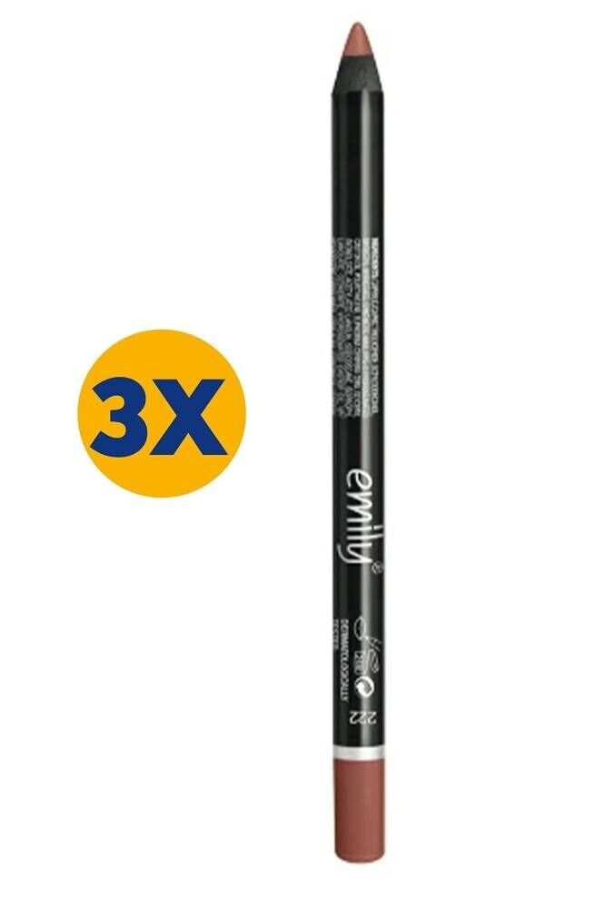 Emıly Dudak Kalemi No: 222 * 3 Adet •Özel formüllü, yüksek kaliteli dudak kalemleri, zengin ve modern renk alternatifleriyle • yoğun renk pigmentleri özelliği ile dudak makyajında uzun süren kalıcı çizgiler yaratır • yumuşak dokusu ve tek sürüşte keskin çizgiler yaratan etkisi ile mükemmel dudak makyajına sahip olmanızı sağlar • Ambalajı açılan ürünlerin iadesi kabul edilmemektedir;