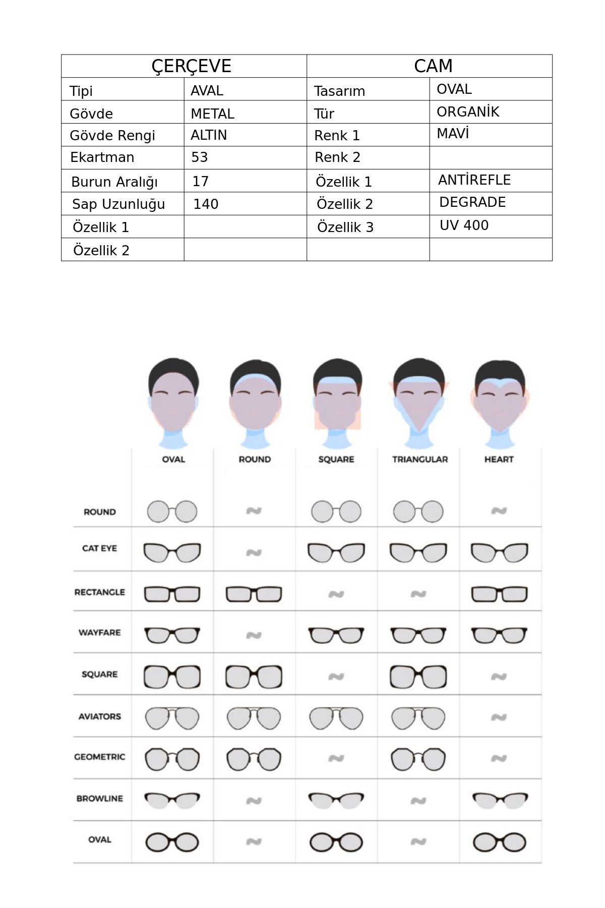 Cam Özelliği .: ORGANİK MAVİ UV400 Korumadır.