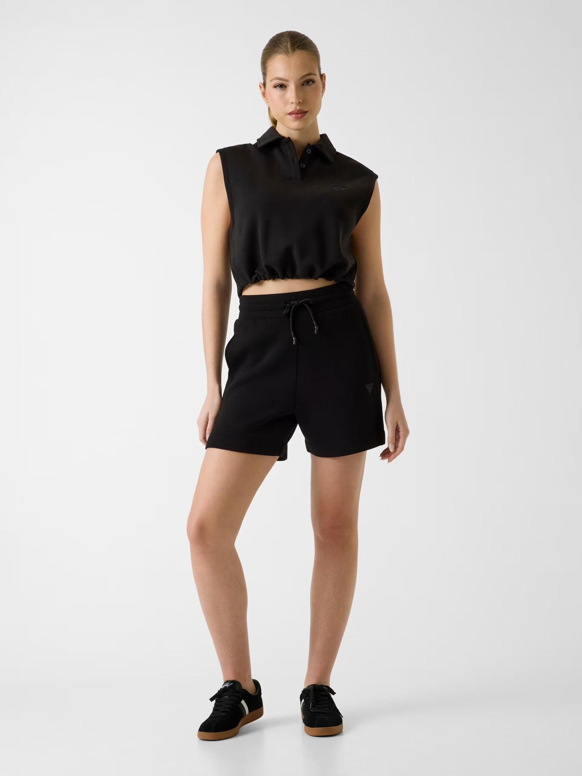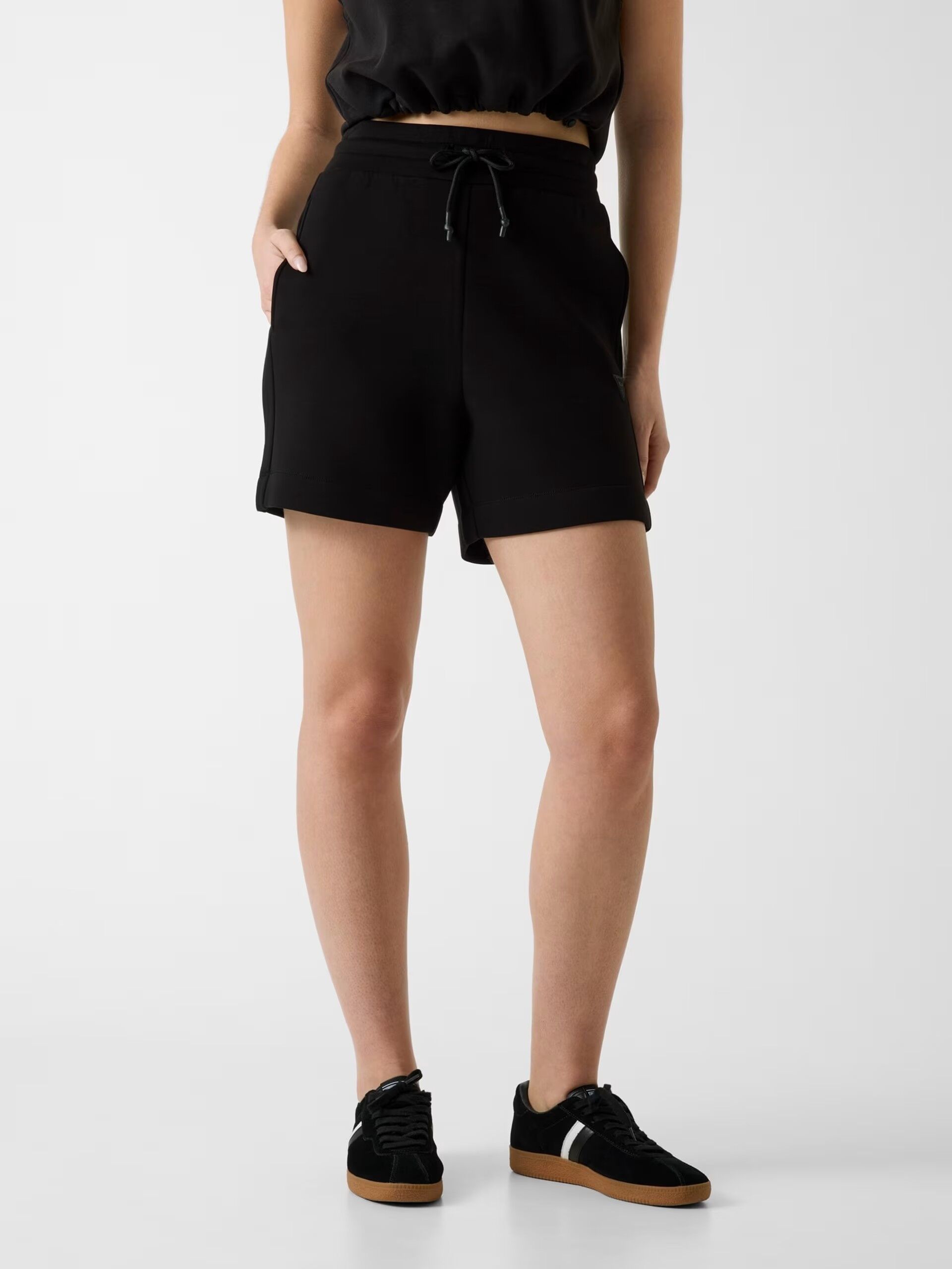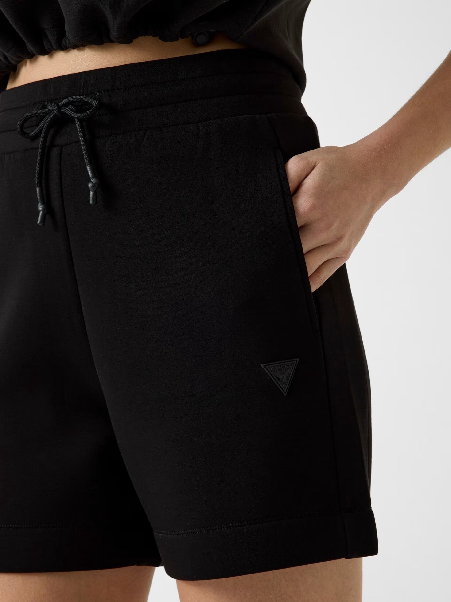 Ürün kodu: V2YD10K7UW2 Viskoz karışımlı şort. Orta yükseklikte. Rahat kesim. İpli kapatma. KUMAŞ TÜRÜ: Dalış kumaşı. SÜSLEMELER: Üçgen logo yaması. Resimde S beden gösterilmiştir. İç bacak uzunluğu: 12 cm / 4,72 inç. Bedeninize uygundur. Siyah renkli kıyafet giyen manken 174 cm boyunda. Koyu mavi renkli kıyafet giyen manken ise 175 cm boyunda.