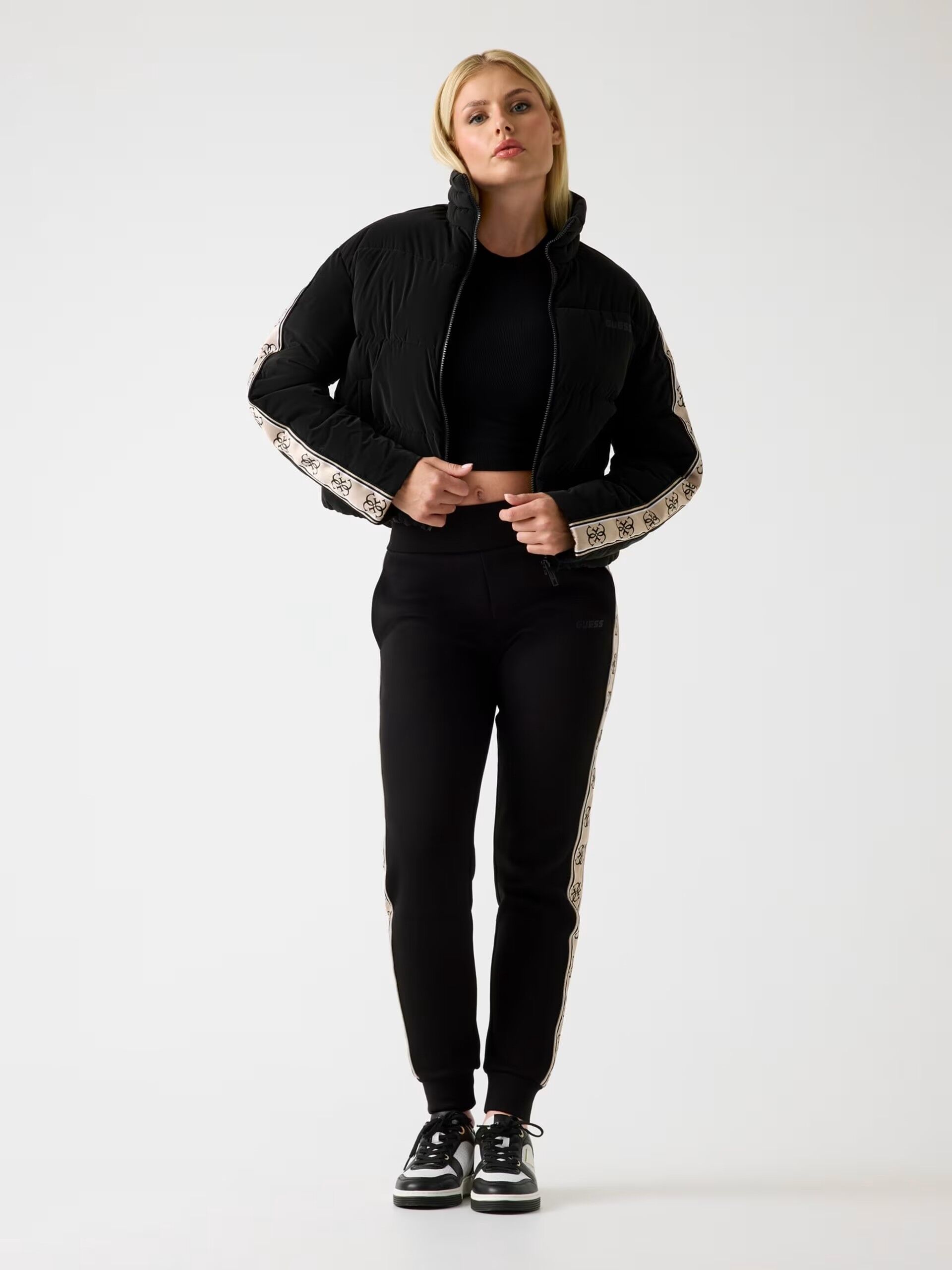 Açıklama Kod# V5BL11WGYC2 Dokuma kumaştan yüksek yakalı şişme mont. 4G logolu yan şeritli uzun kollu. Dolgulu yatay kapitöne. Üst göğüste küçük üçgen logo yaması. Ön eğik cepler ve fermuar ile kapama. Toplam uzunluk: 54 cm / 21 in. Kol uzunluğu: 58 cm / 22,5 in. Fotoğrafta S beden gösterilmektedir. Yukarıdaki beden tablomuza bakınız. Standart bedendir. Krem Rengi ve Siyah renklerinde giyinen model XXX cm boyundadır