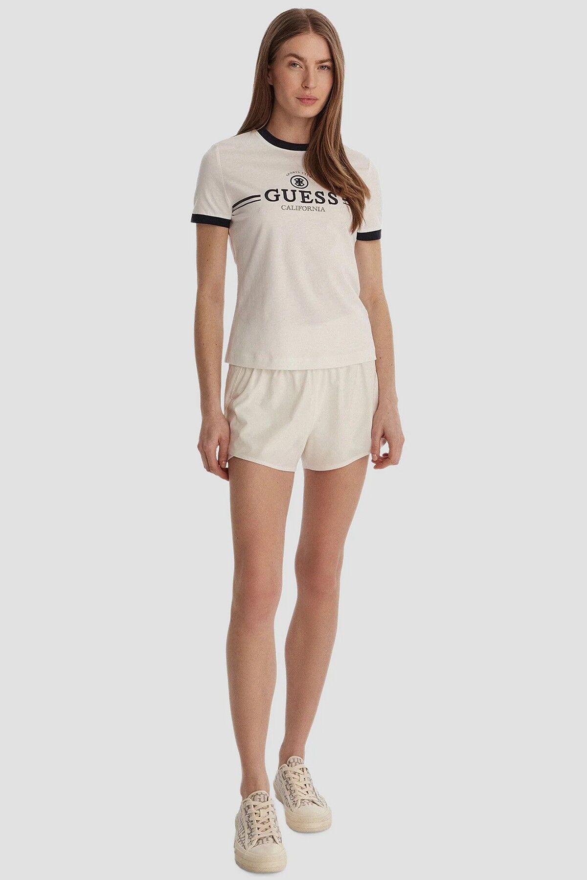 Madde V6GI08.K2975;G011 Ürün bilgileri Renk: beyaz (fildişi), siyah Dekorasyon: logo baskısı Marka: guess Cinsiyet: kadın Baskı: baskı ile Depo Malzeme: %100 pamuk Kesim ve şekillendirme Stil: Vücuda oturan Yaka tipi: yuvarlak Fotoğraftaki model Modelin beden numarası: S Boy: 177 cm