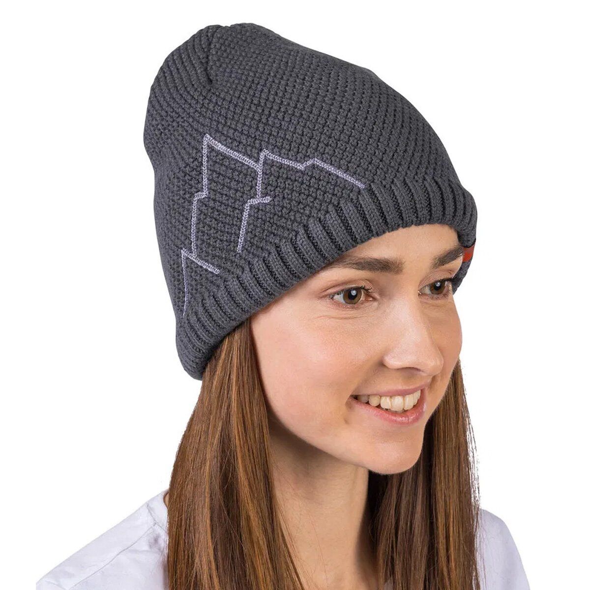 Hannah Brita, nakışlı kış örgülü merino yün bere. İçeride, Hannah Bere alnın tepesinde sıralanan hoş bir fonksiyonel sentetik görünüme sahiptir. Bere örme, başın çevresini iyi saran kaburga örme desenine sahiptir. Doğal malzemedeki modern tasarımı, dağların zıt nakış desenleriyle tasarlanmıştır.