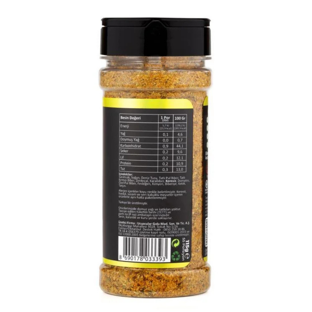İçindekiler : Sarımsak, soğan, tatlı kırmızı biber, deniz tuzu, kereviz yaprağı, domates, zerdeçal, karabiber, özel pul biber, kimyon, fesleğen, tarçın, kekik, biberiye ve tatlı pul biber