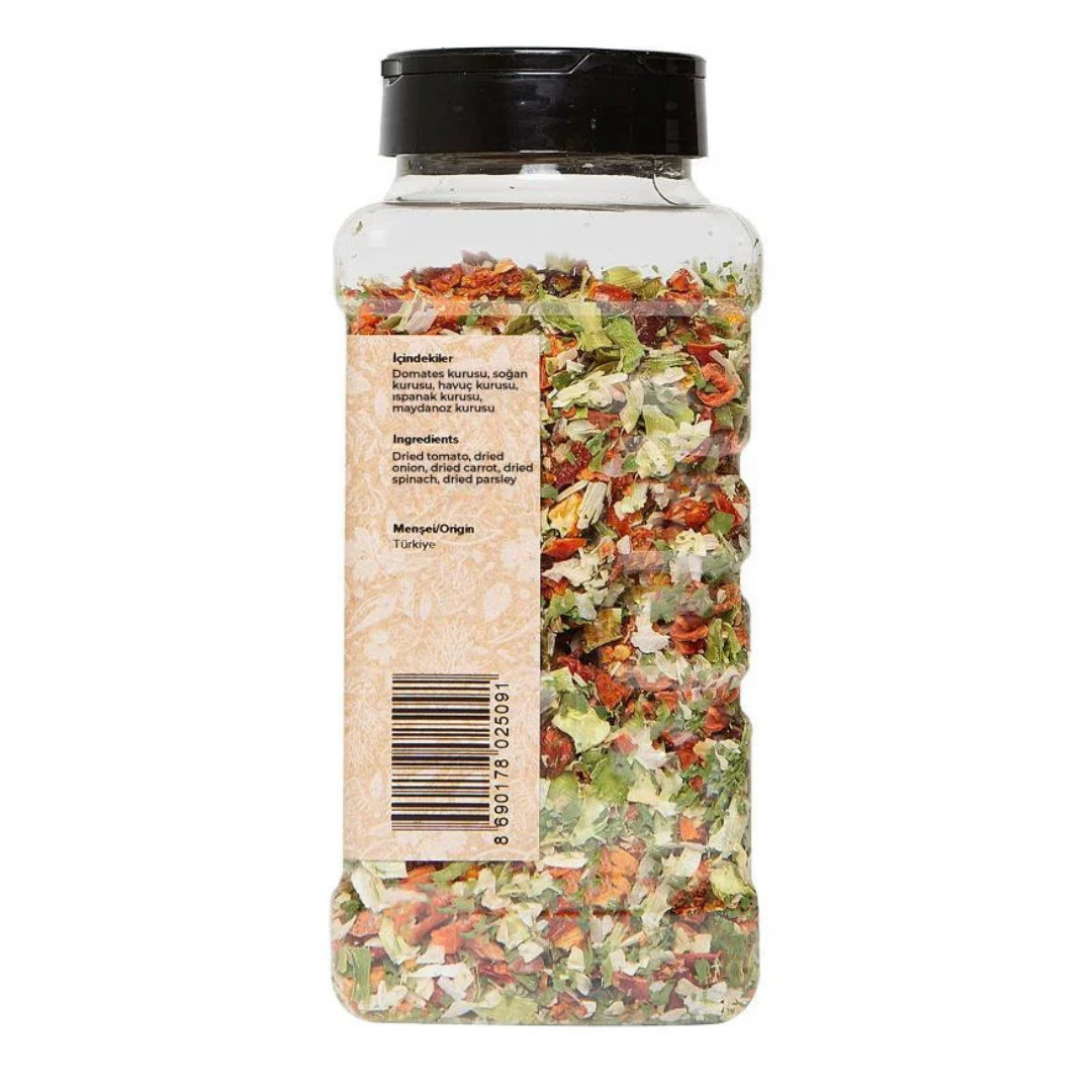 Domates, soğan, havuç, ıspanak ve maydanozun kurutulmuş parçalarından oluşan mutfakta hazır sebze aroması gibi kullanılabilen bir karışımdır. Taze sebzeyi her zaman elinizin altında bulunduramadığınız zamanlarda tencere yemeklerine ve soslara hızlıca karakter kazandırmayı kolaylaştırır.