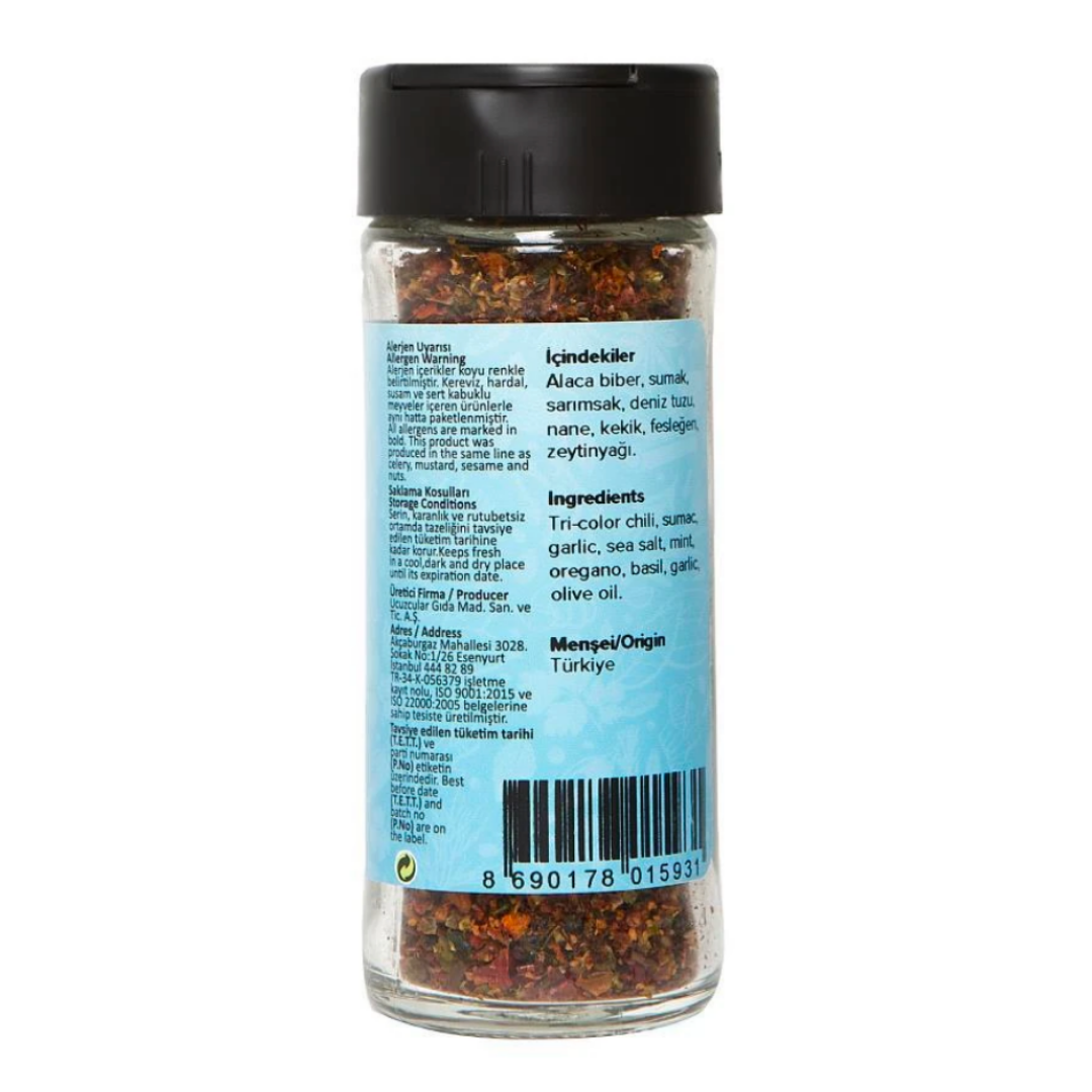 İçindekiler : Alaca Biber, Sumak, Sarımsak, Deniz Tuzu, Nane, Kekik, Fesleğen, Zeytinyağı