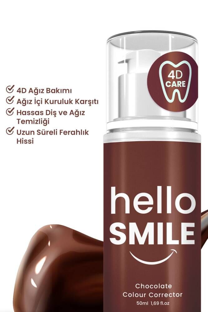 HELLO SMILE ÇİKOLATA AROMALI ANINDA BEYAZLATICI DİŞ JELİ ; Renk düzeltici etkisi ve anında gülümseten Çikolata Aroması ile zenginleştirilmiş özel formülasyonu sayesinde sarının tüm tonlarını kalıntı bırakmadan temizlenmesine yardımcı olarak anında beyazlatıcı etki göstermesi için geliştirdiğimiz Yeni Nesil 4D ağız bakım ürünüdür. Suda çözünebilen Özel Renk Teknolojisi ile dişlerdeki sarı renklerin nötralize edilmesine, sarı gölgelerin giderilmesine, kahve, çay ve sigara lekelerine yönelik bakıma destek vererek daha beyaz bir diş görünümünü amaçlar. İçeriğindeki Xylitol ile hassas diş ve ağız temizliğinin yanı sıra uzun süreli ferahlatıcı etkisi ile ağız kokusuna karşı yardımcı olmayı, çikolata tadı ile fırçalama sonrası ağızda rahatlatıcı bir his bırakmayı hedefler. Köpürmeyen jel yapısıyla dişlerinizi derinlemesine temizlerken ağız içi kuruluğuna yönelik bakıma yardımcı olur. Daha parlak bir görünüm ortaya çıkarmak için dişlerinizdeki sıcak ve soğuk tonların dengelenmesine katkı sağlar. ; Florür, Aşındırıcı ve Zararlı Kimyasal İçermez! ; NASIL KULLANILIR? ; Diş fırçasının üzerine bir miktar alarak dairesel hareketler ile dişlerinizi fırçalayınız. Uygulama sonrası ağzınızı çalkalayarak durulayanız. Hello Smile ürünü köpürmez. Hello Smile kullanım öncesi ve sonrasında diş macunu kullanımı gerektirmemektedir. Yetişkin ve çocuk için günlük kullanıma uygundur. ;