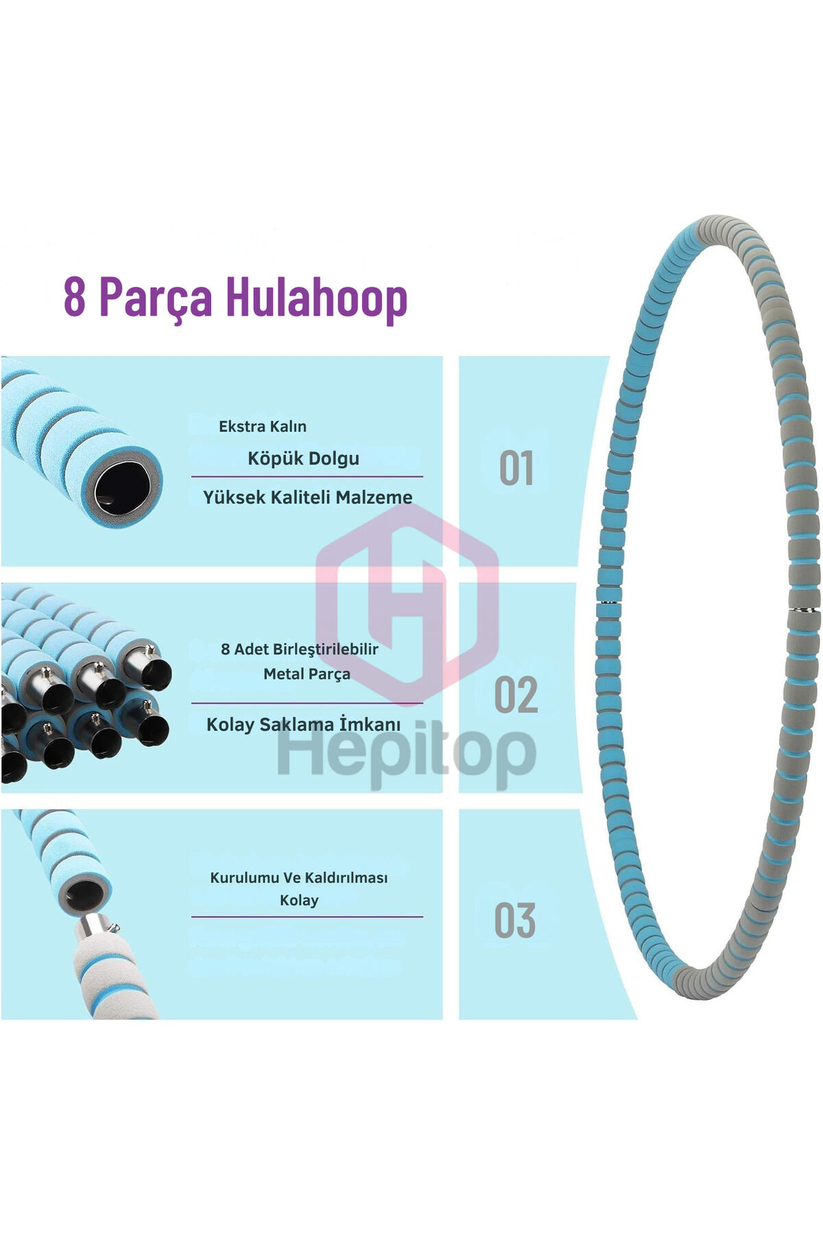 Hepitop 8 Parça Ağırlıklı Metal Hulahop Büyük Boy 85 Cm Çapında 750 GR Hula Hoop