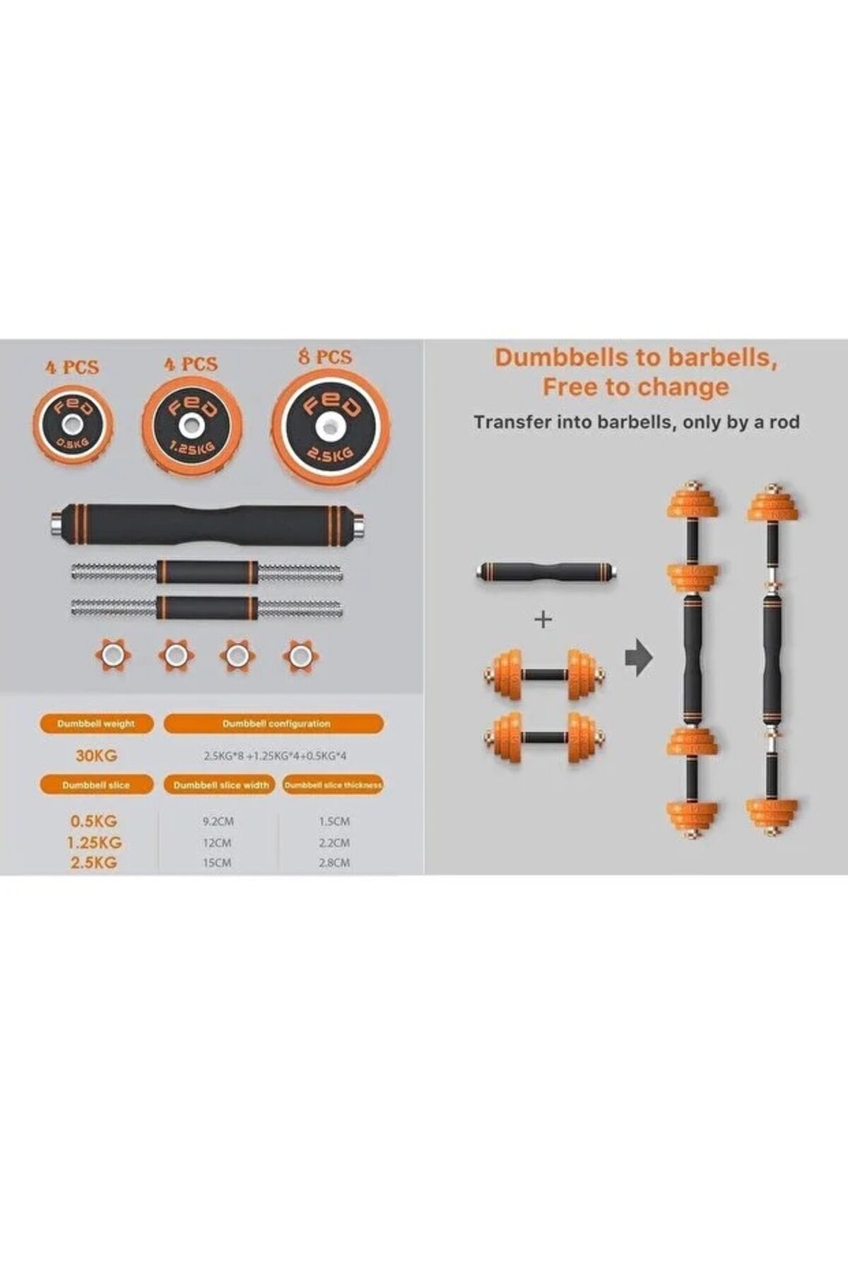 Hepitop Çantalı 30 KG Dambıl Seti Döküm