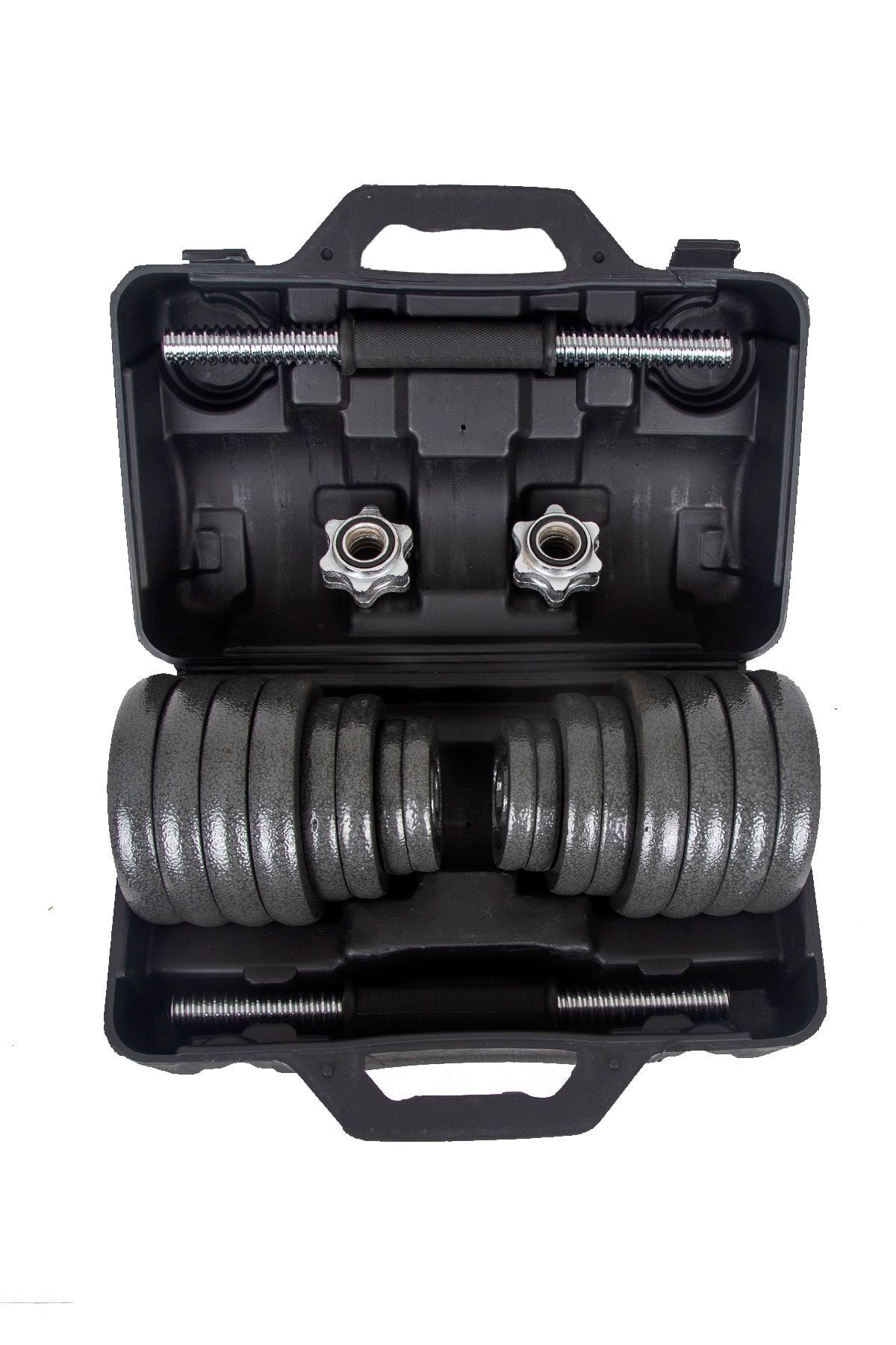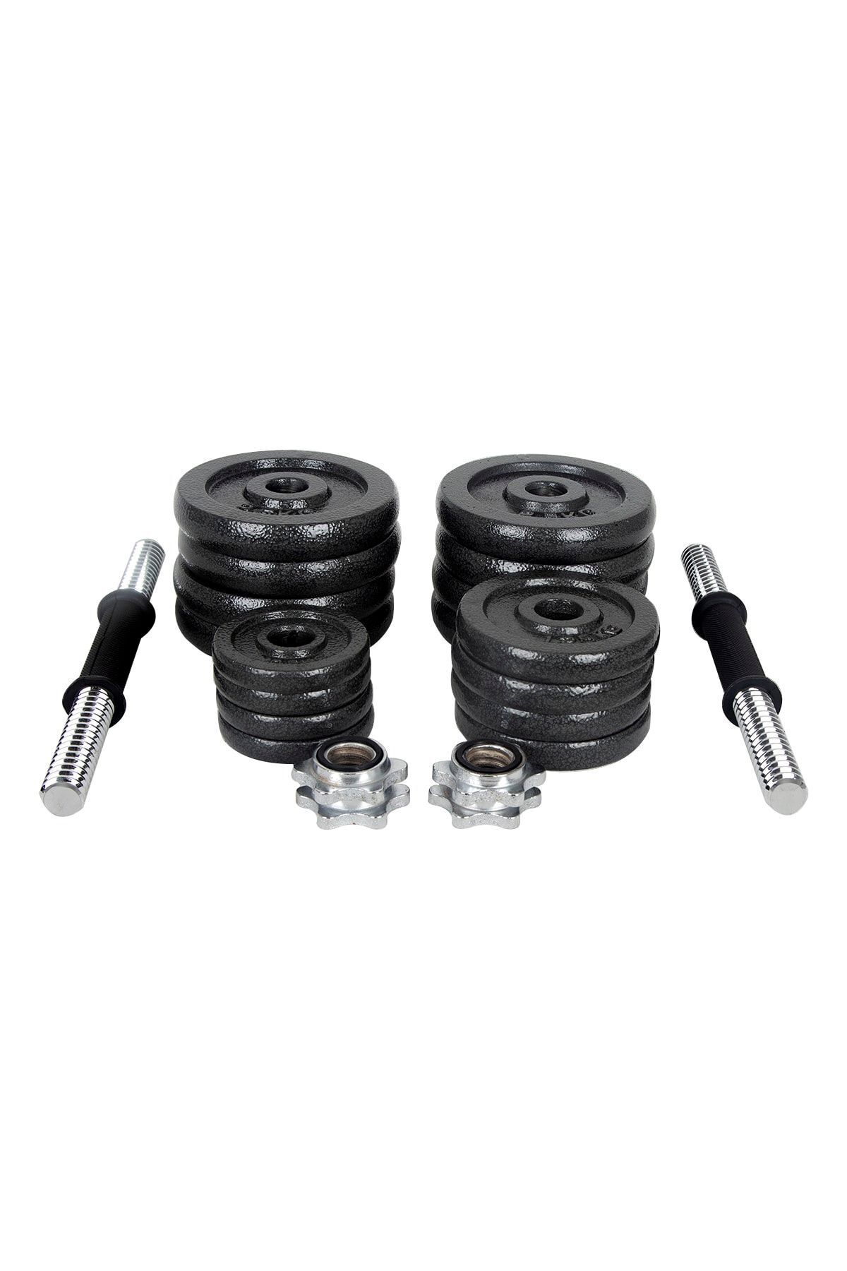 Hepitop Çantalı Döküm Plaka Dambıl Seti 30 Kg Siyah Dumbbell Set -Siyah