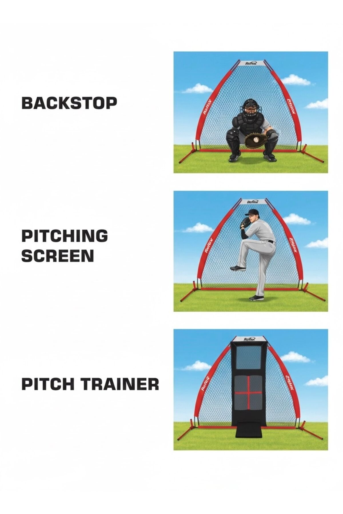 Hepitop REFLEX 3in1 Beyzbol Filesi Katlanabilir Beyzbol Antrenman Filesi Seti Hızlı Kurulum Taşıma Çantalı