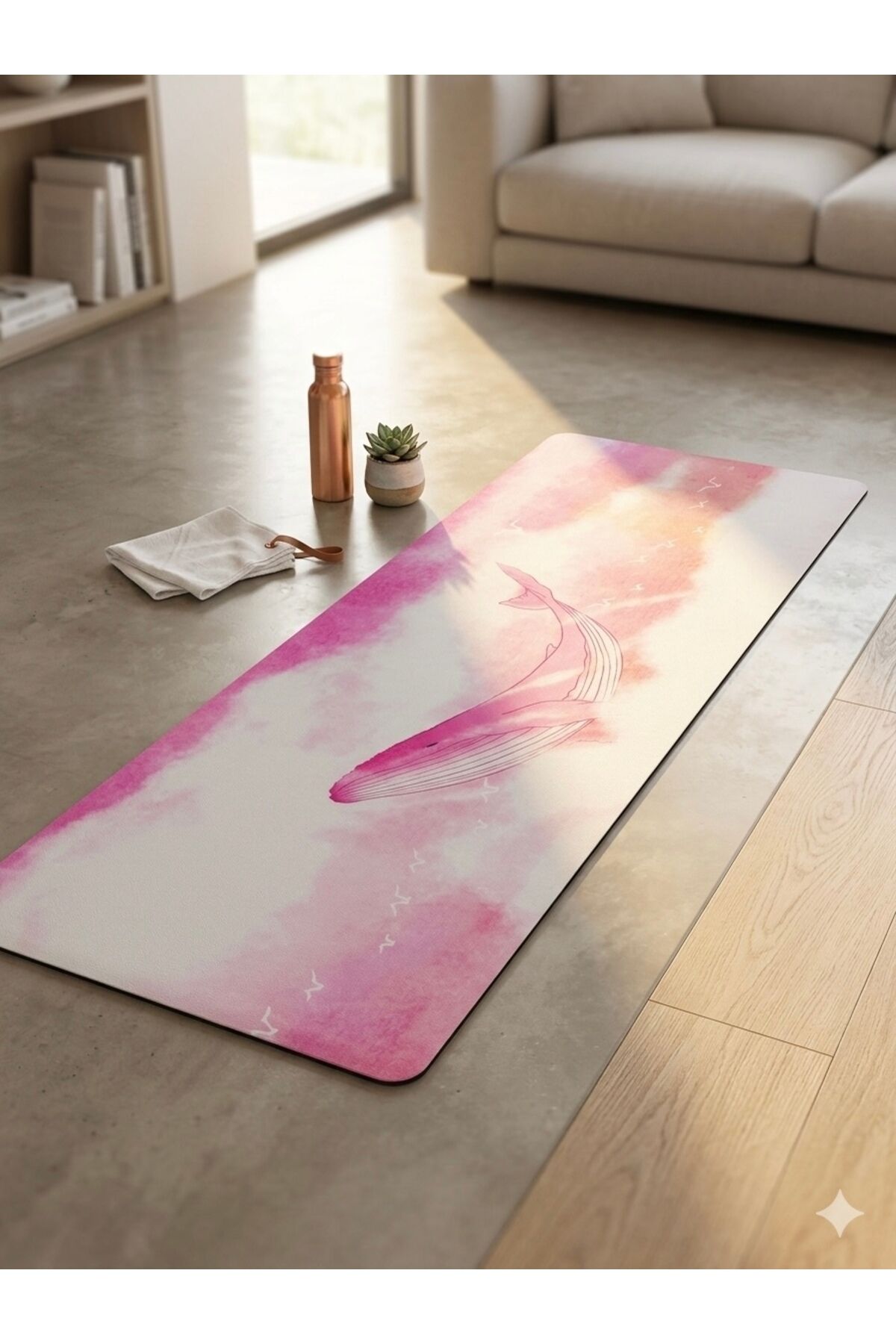 Hepitop Taşıma Çantalı Pembe Desenli Kaymaz TPE Yoga Matı & Egzersiz Minderi - 6mm Kalınlık