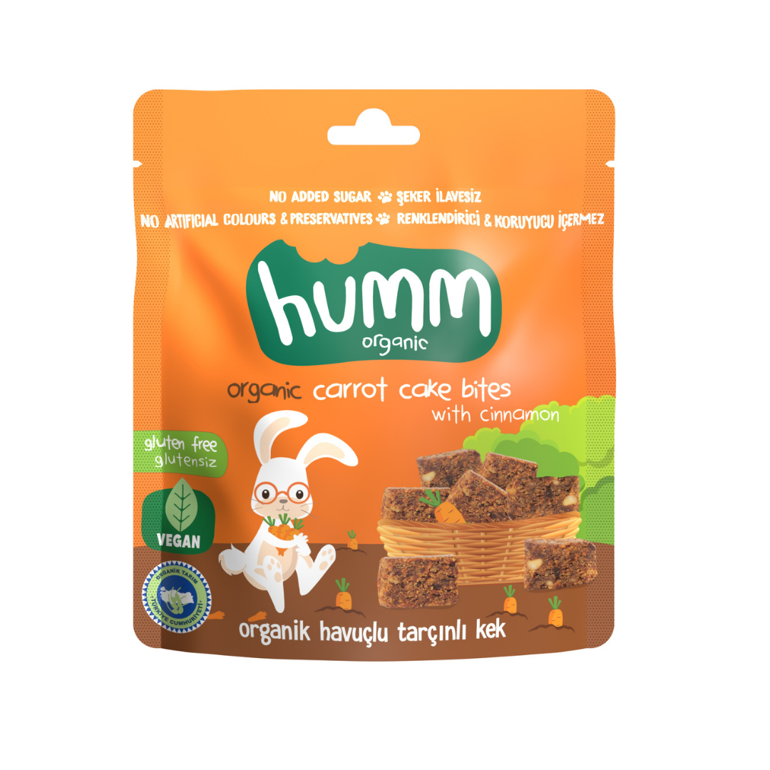 İçindekiler: Organik hurma dolgusu, organik karabuğday unu, organik elma suyu, organik kavrulmuş fındık, o rganik kurutulmuş havuç(%7,1), organik ayçiçek yağı, organik hurma pekmezi, kabartıcı(sodyum bikarbonat), organik toz tarçın(%1,1), deniz tuzu.