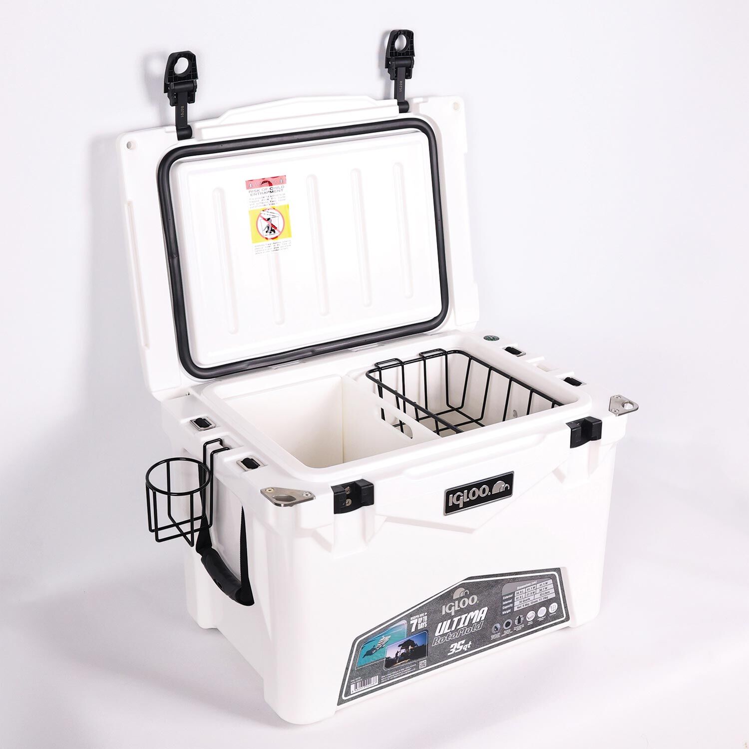 IGLOO Ultima 35 Qt RotoMold Buzluk 33 Litre Tüm doğa etkinlikleriniz eskisinden daha soğuk olacak! Öne Çıkan Özellikler: Ürün Aksesuarları: RotoMold Tasarım: Ultima buzluk ailesi Rotational Molding tekniği ile üretilmiştir. Standart enjeksiyon kalıplama ile üretilen buzluklardan hem yapısal hem de kullanım deneyimi olarak farklıdır. Gövde ve kapak tek parça olarak üretilmiştir, dolayısıyla ek yeri olmadığı için sızdırma yapmaz, ısı kaybı minimumda olur. Et kalınlıkları sektör standartının çok üzerindedir. Darbeye ve yüke karşı ekstra dayanıklıdır. Buz kasetlerine dahi ihtiyaç duymadan günlerce muhafaza artık hayal değil! Ultima ile mümkün.