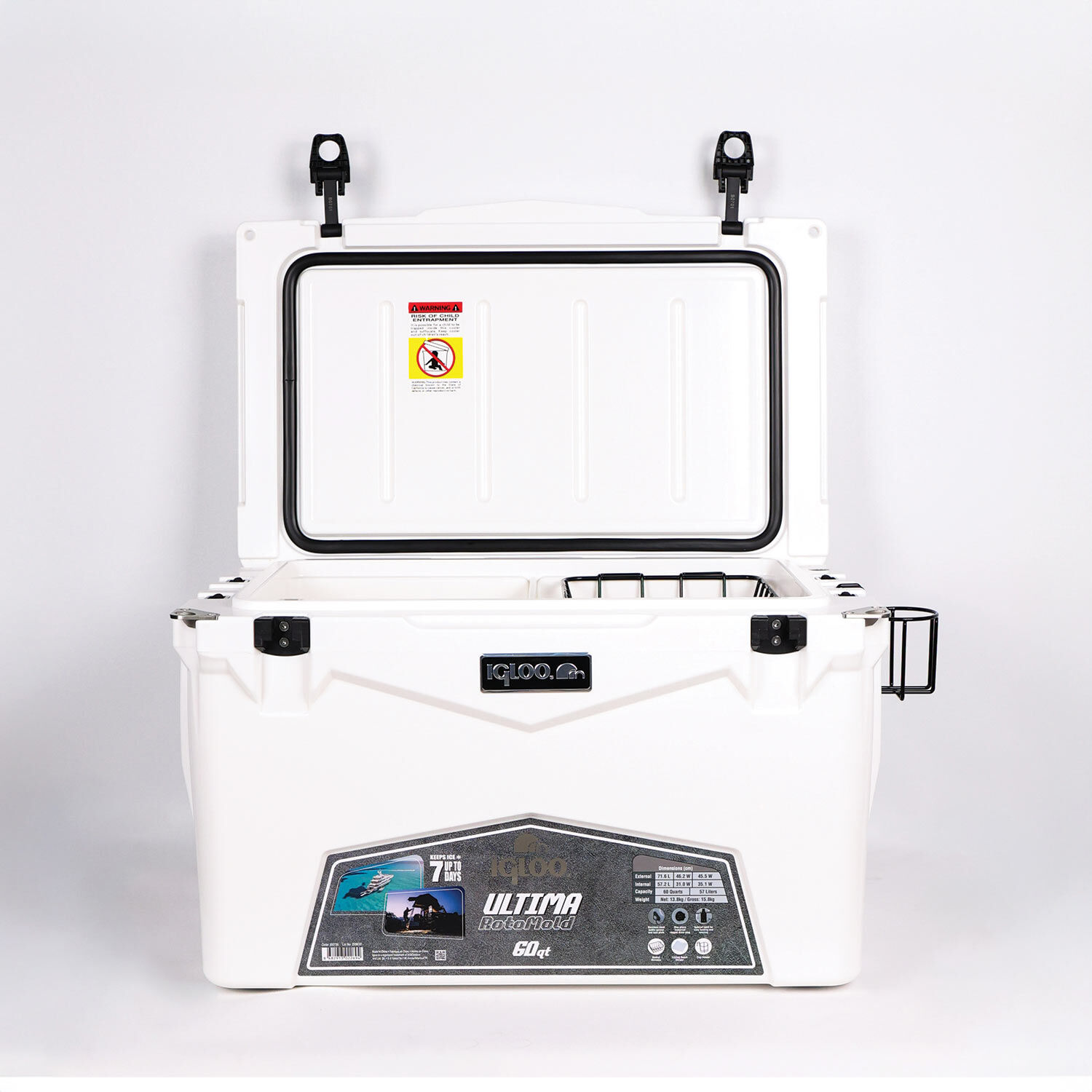 IGLOO Ultima 60 Qt RotoMold Buzluk 57 Litre Tüm doğa etkinlikleriniz eskisinden daha soğuk olacak! Öne Çıkan Özellikler: Ürün Aksesuarları: RotoMold Tasarım: Ultima buzluk ailesi Rotational Molding tekniği ile üretilmiştir. Standart enjeksiyon kalıplama ile üretilen buzluklardan hem yapısal hem de kullanım deneyimi olarak farklıdır. Gövde ve kapak tek parça olarak üretilmiştir, dolayısıyla ek yeri olmadığı için sızdırma yapmaz, ısı kaybı minimumda olur. Et kalınlıkları sektör standartının çok üzerindedir. Darbeye ve yüke karşı ekstra dayanıklıdır. Buz kasetlerine dahi ihtiyaç duymadan günlerce muhafaza artık hayal değil! Ultima ile mümkün.