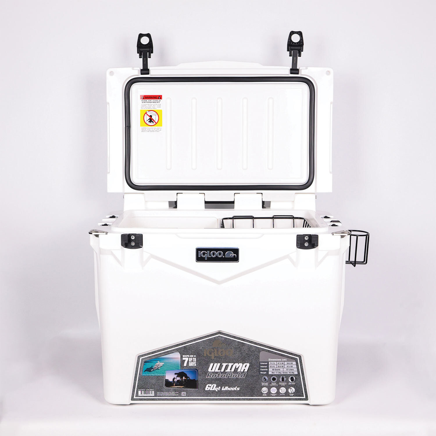 IGLOO Ultima 60 Qt Tekerlekli RotoMold Buzluk 57 Litre Tüm doğa etkinlikleriniz eskisinden daha soğuk olacak! Öne Çıkan Özellikler: Ürün Aksesuarları: RotoMold Tasarım: Ultima buzluk ailesi Rotational Molding tekniği ile üretilmiştir. Standart enjeksiyon kalıplama ile üretilen buzluklardan hem yapısal hem de kullanım deneyimi olarak farklıdır. Gövde ve kapak tek parça olarak üretilmiştir, dolayısıyla ek yeri olmadığı için sızdırma yapmaz, ısı kaybı minimumda olur. Et kalınlıkları sektör standartının çok üzerindedir. Darbeye ve yüke karşı ekstra dayanıklıdır. Buz kasetlerine dahi ihtiyaç duymadan günlerce muhafaza artık hayal değil! Ultima ile mümkün.
