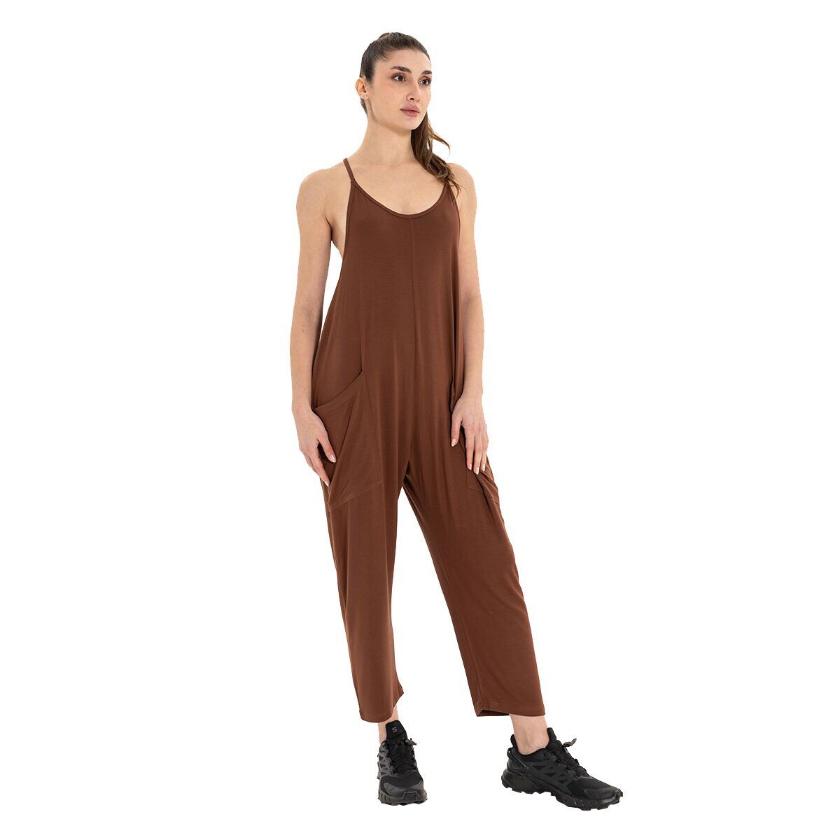 Inguz Cep Detay Yoga Şalvar Tulum Kahverengi