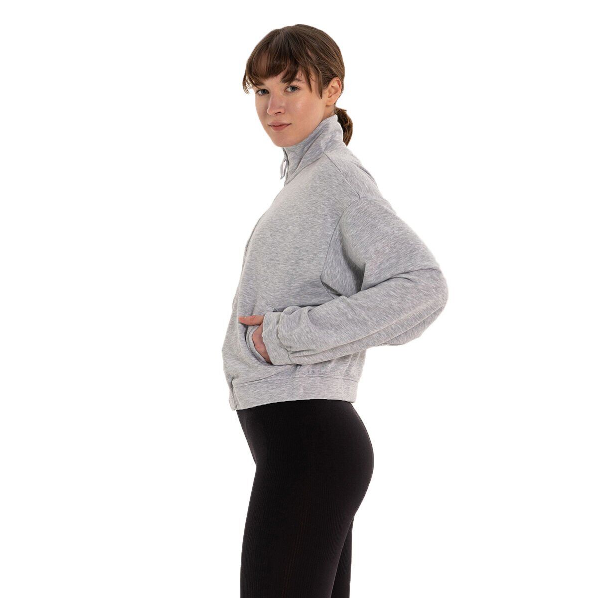 Inguz Dik Yaka Fermuarlı Sweatshirt Gri